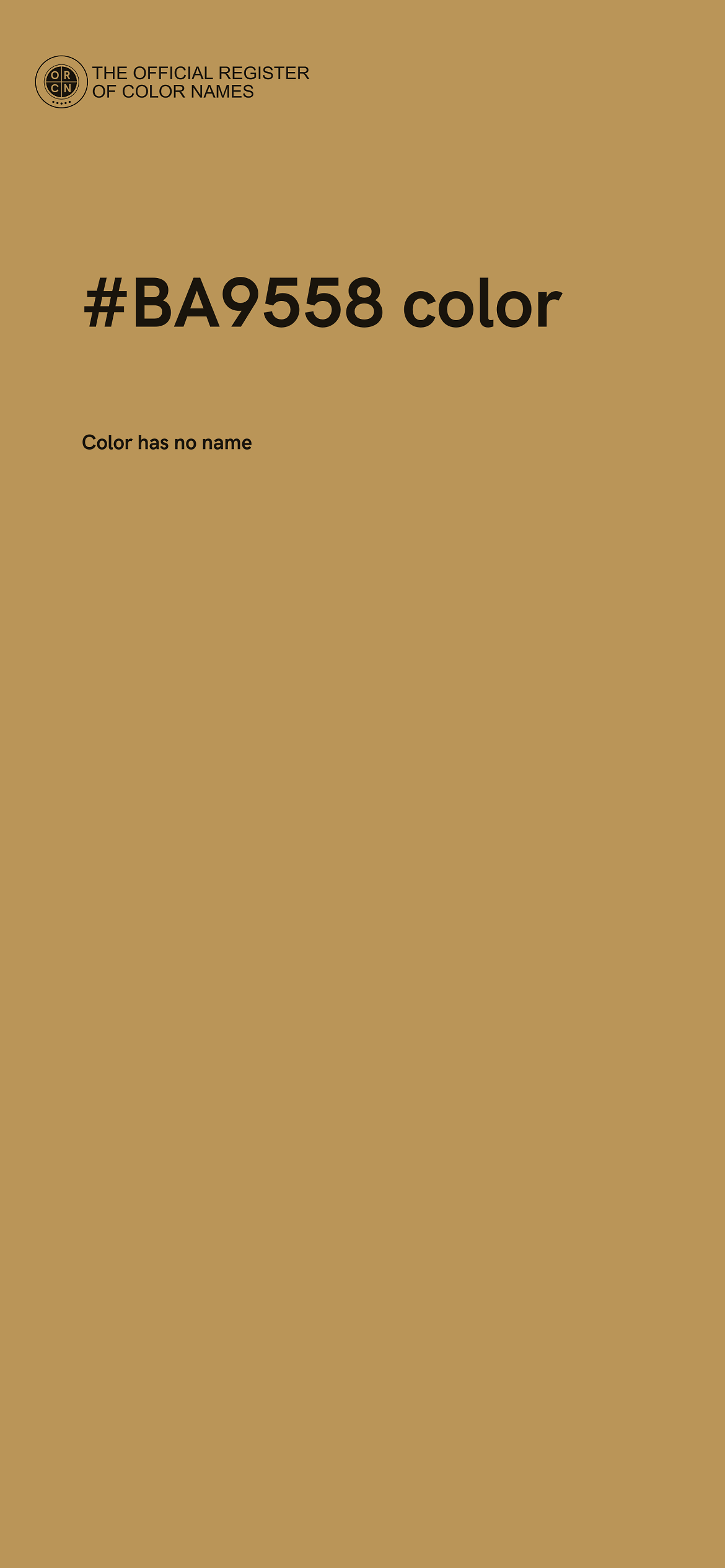 The digital color HEX #BA9558 belongs to the Orange Color Family featuring Moderate Saturation (Saturation Family) and Light (Brightness Family).
