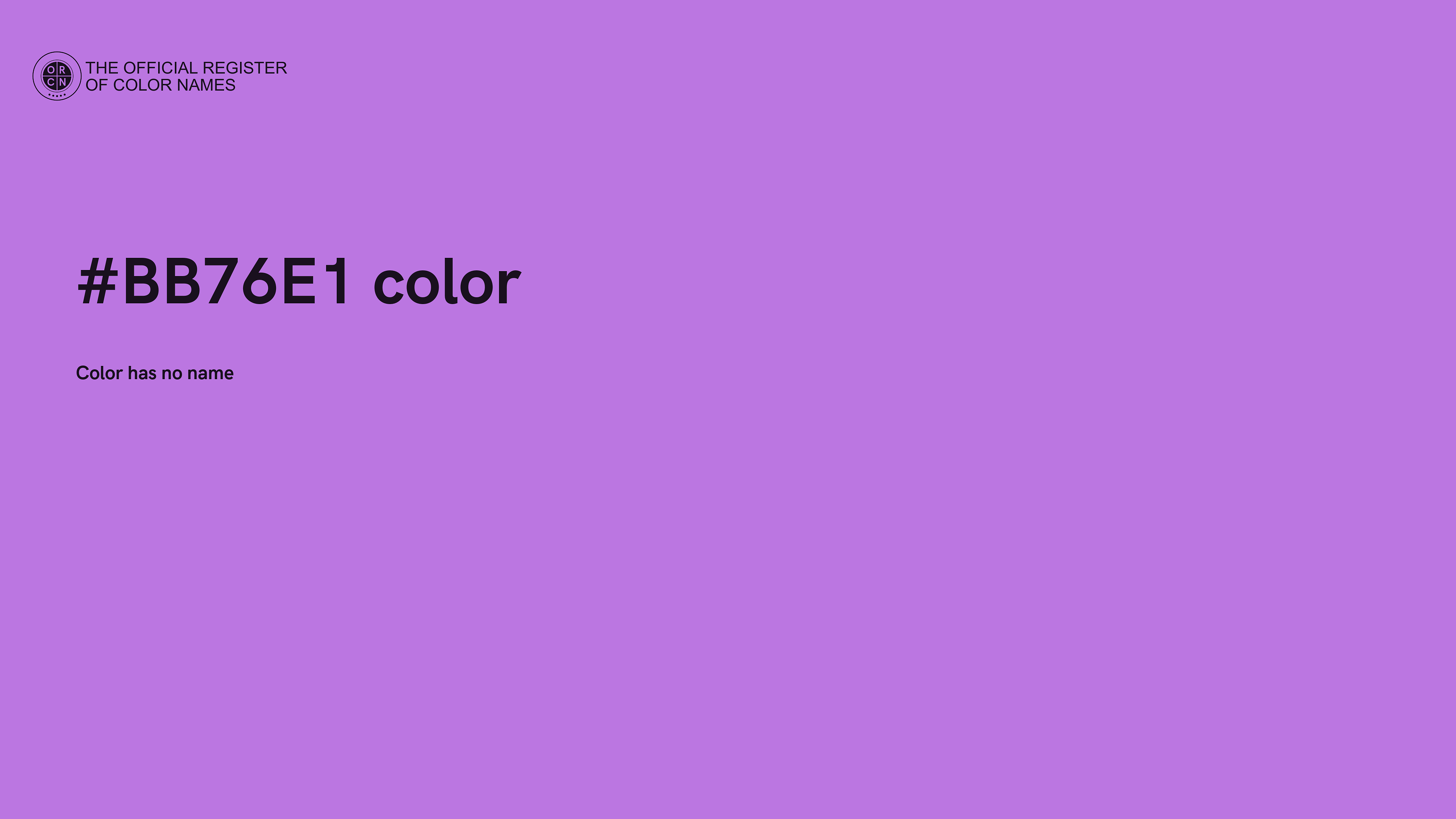 The digital color HEX #BB76E1 belongs to the Violet Color Family featuring High Saturation (Saturation Family) and Very Light (Brightness Family).