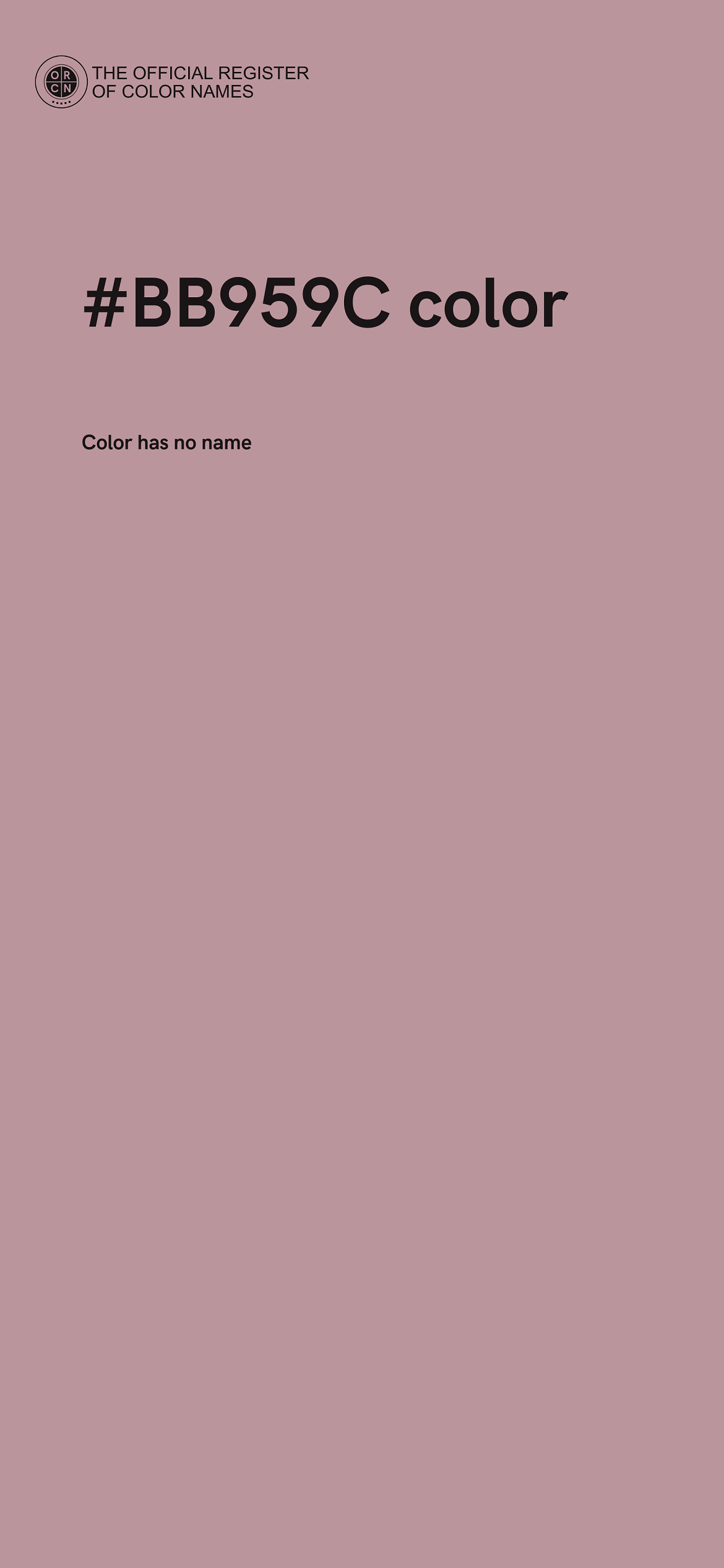 The digital color HEX #BB959C belongs to the Red Color Family featuring Low Saturation (Saturation Family) and Very Light (Brightness Family).