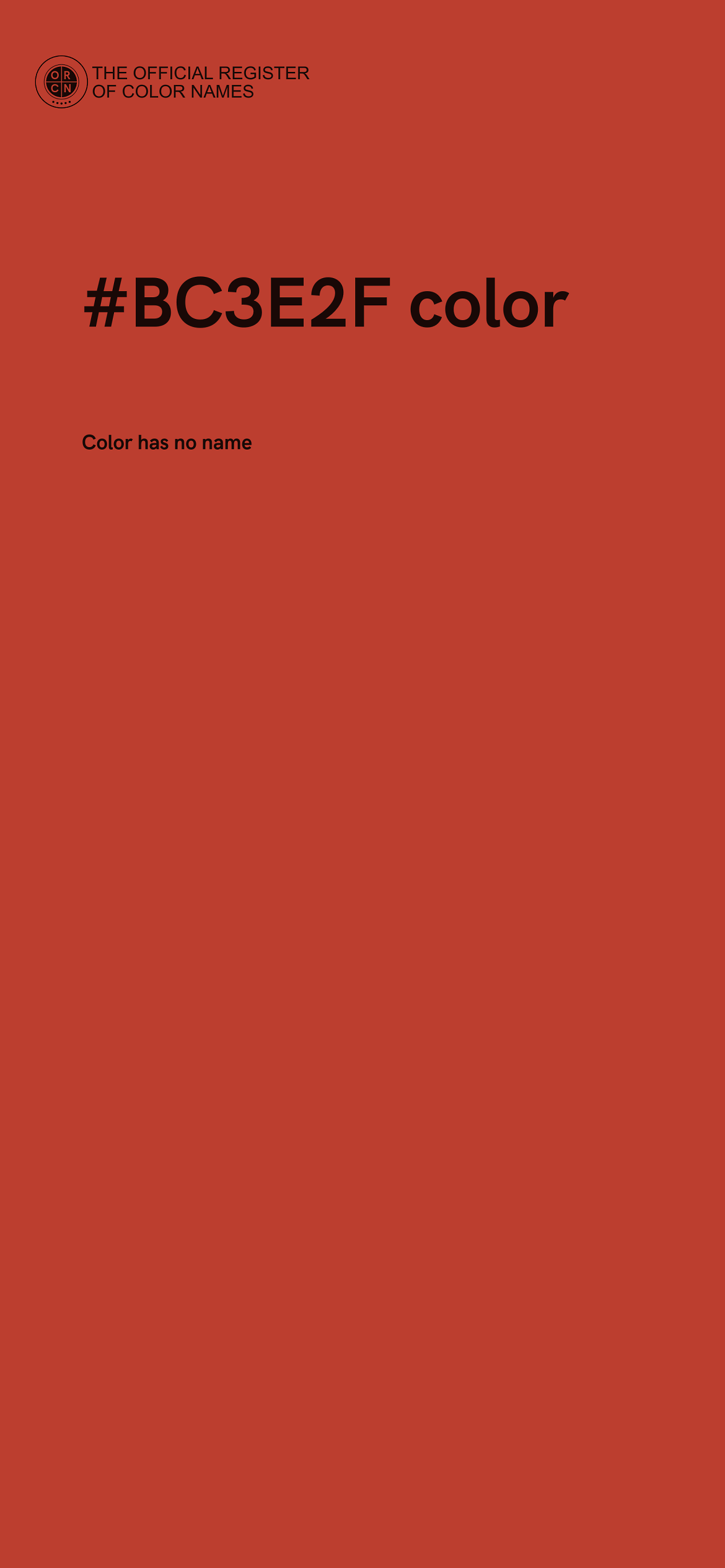 The digital color HEX #BC3E2F belongs to the Red Color Family featuring High Saturation (Saturation Family) and Light (Brightness Family).