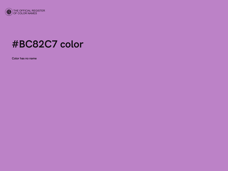 The digital color HEX #BC82C7 belongs to the Magenta Color Family featuring Mild Saturation (Saturation Family) and Very Light (Brightness Family).