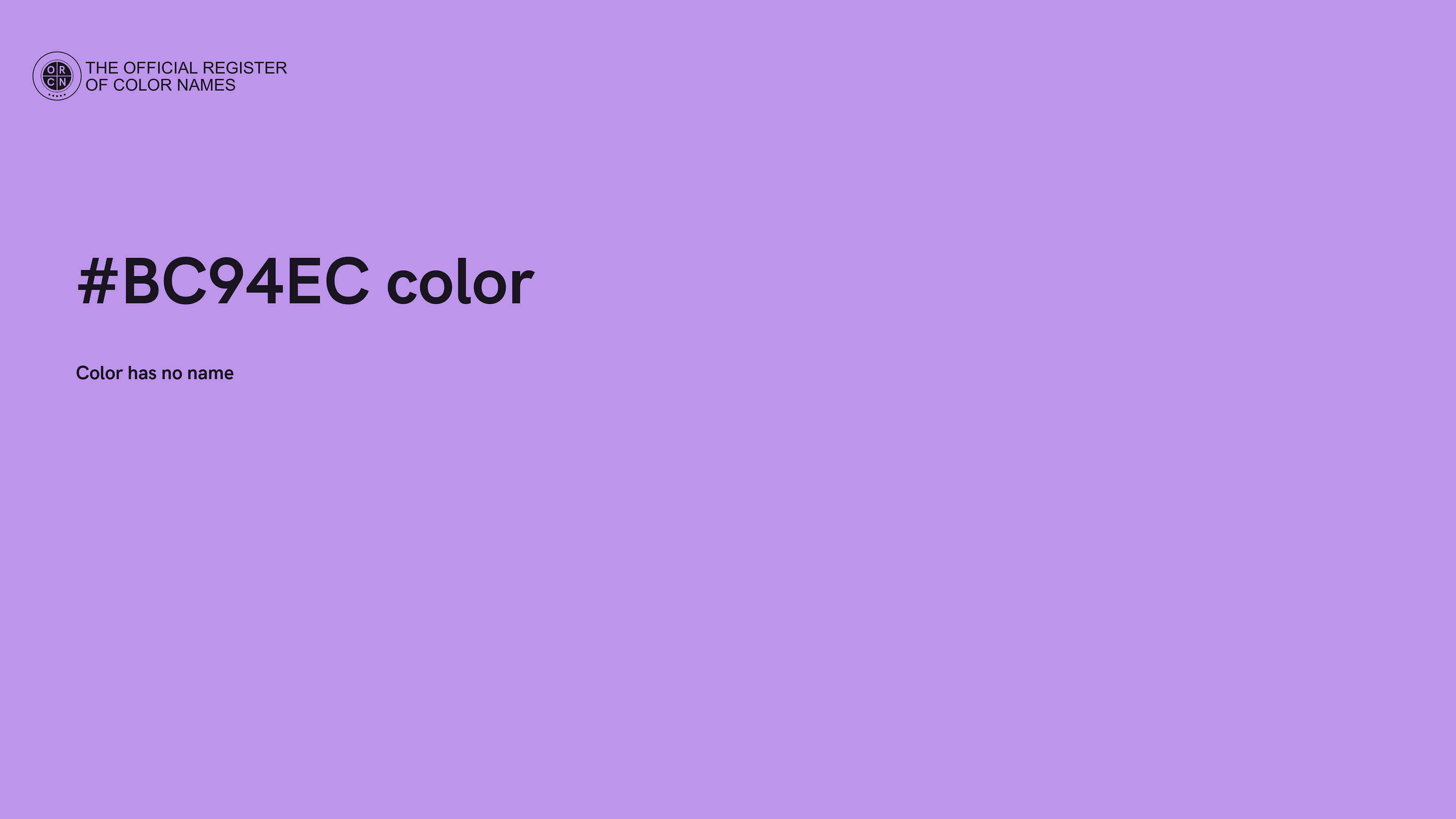 For printing in non digital world, #BC94EC is represented in CMYK as 19 Cyan, 35 Magenta, 0 Yellow, and 7 Black (Key) (C:19 M:35 Y:0 K:7).