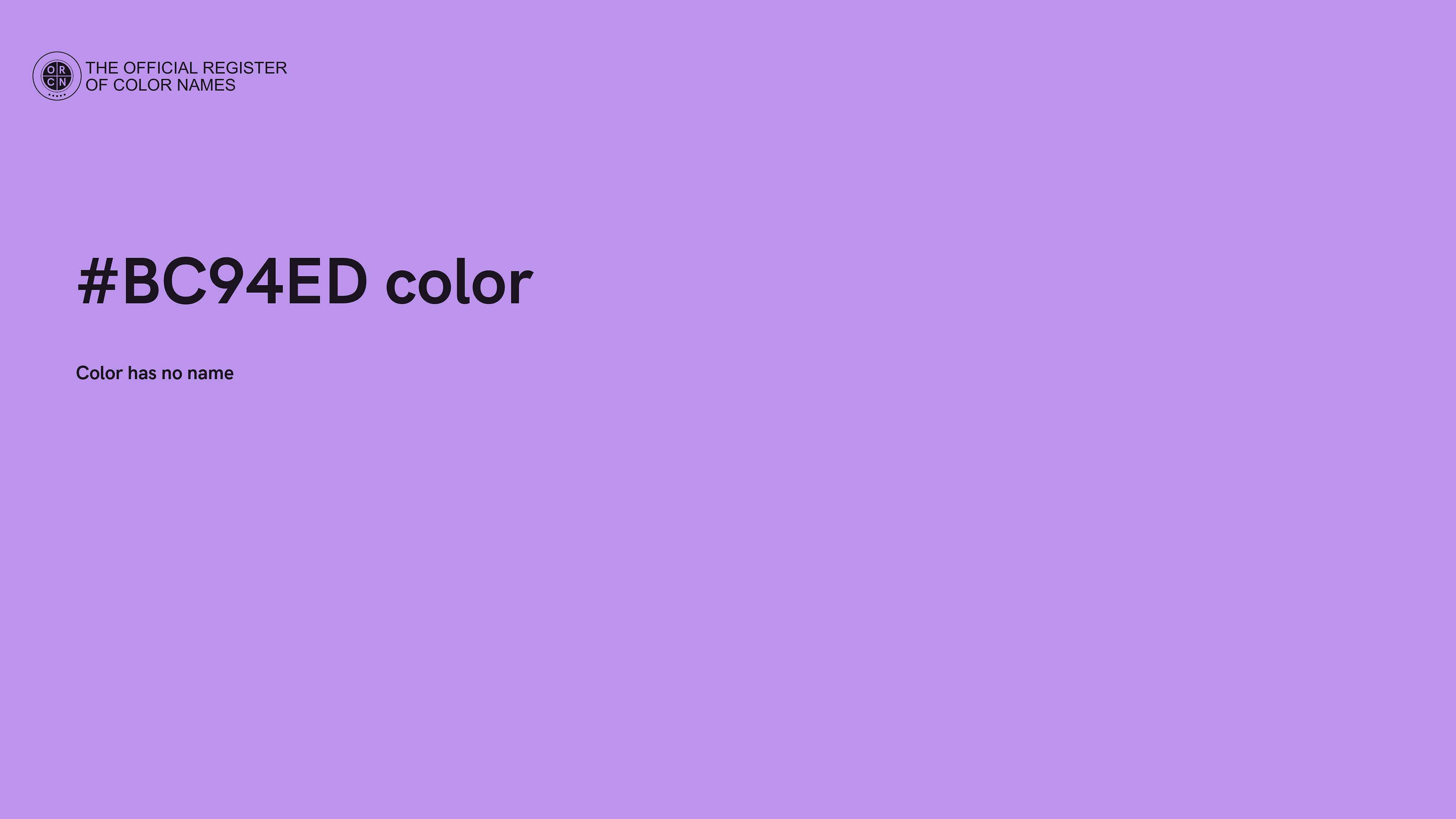 The digital color HEX #BC94ED belongs to the Violet Color Family featuring High Saturation (Saturation Family) and Very Light (Brightness Family).