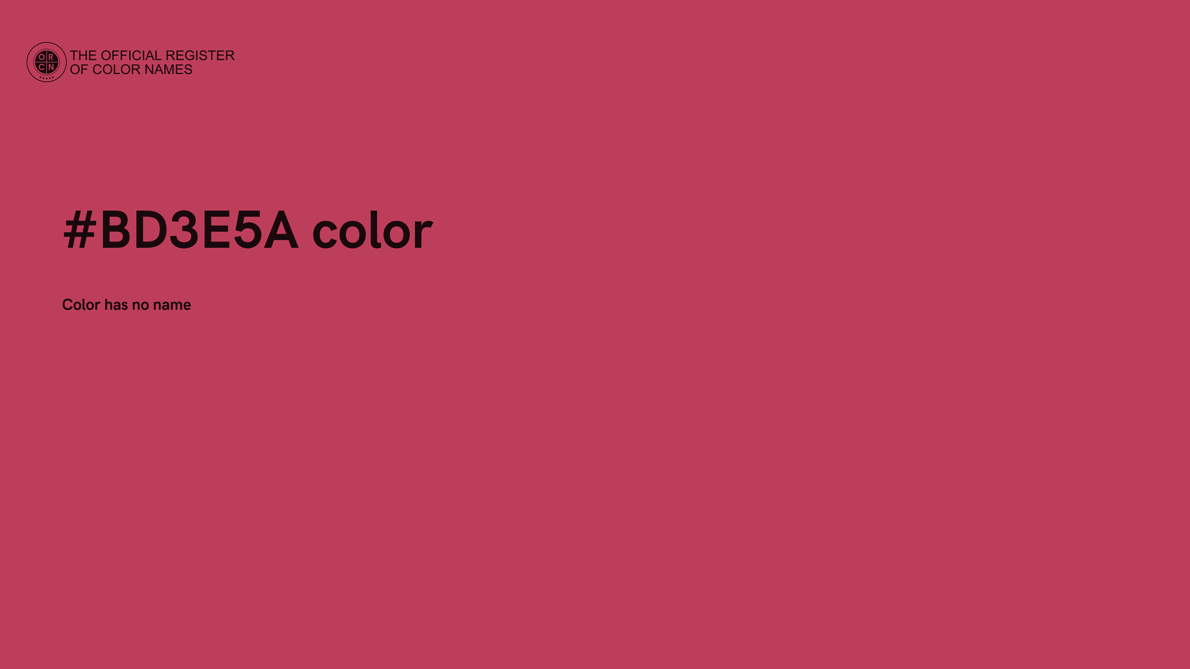 For printing in non digital world, #BD3E5A is represented in CMYK as 0 Cyan, 50 Magenta, 39 Yellow, and 26 Black (Key) (C:0 M:50 Y:39 K:26).