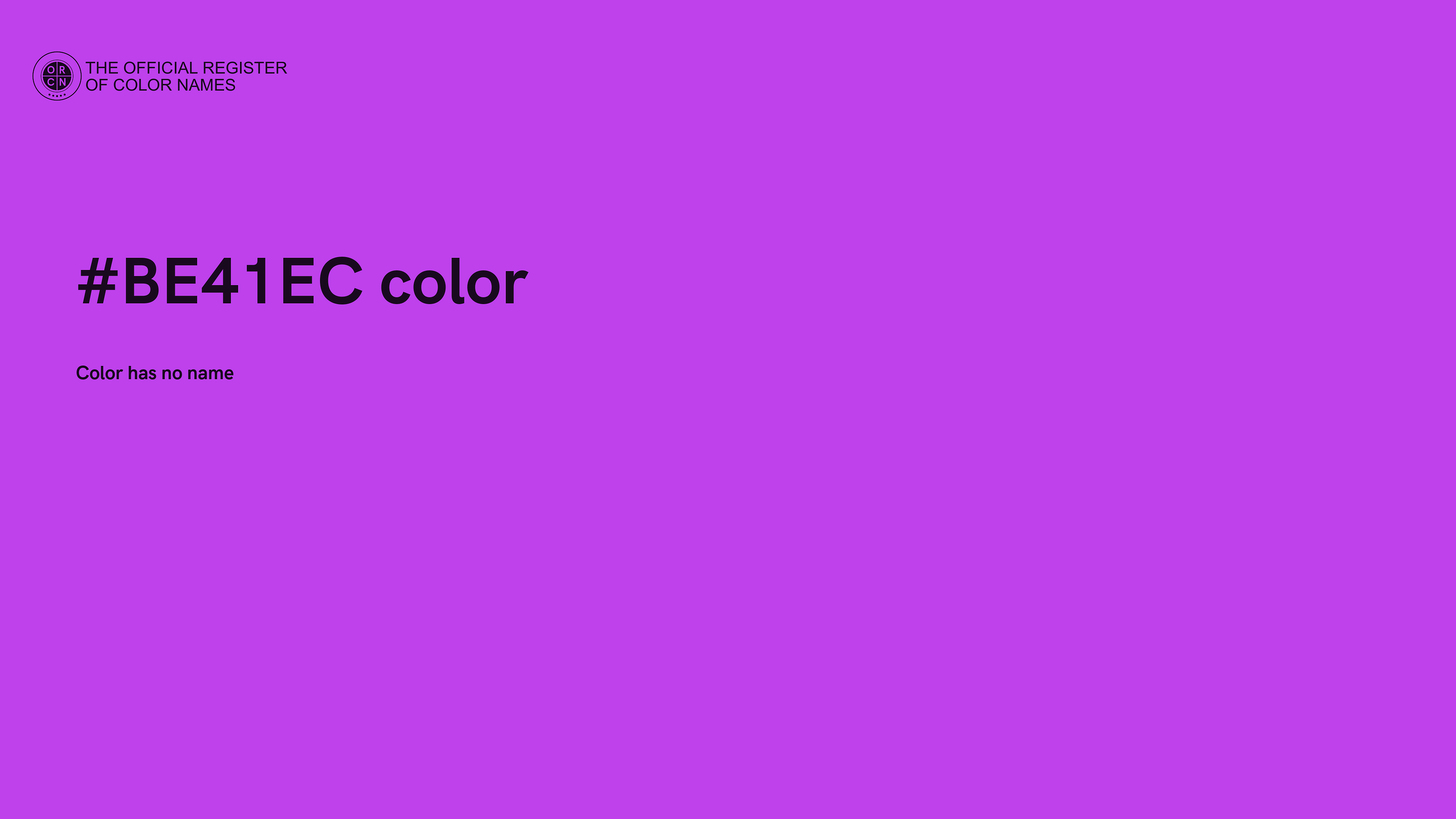 For printing in non digital world, #BE41EC is represented in CMYK as 18 Cyan, 67 Magenta, 0 Yellow, and 7 Black (Key) (C:18 M:67 Y:0 K:7).