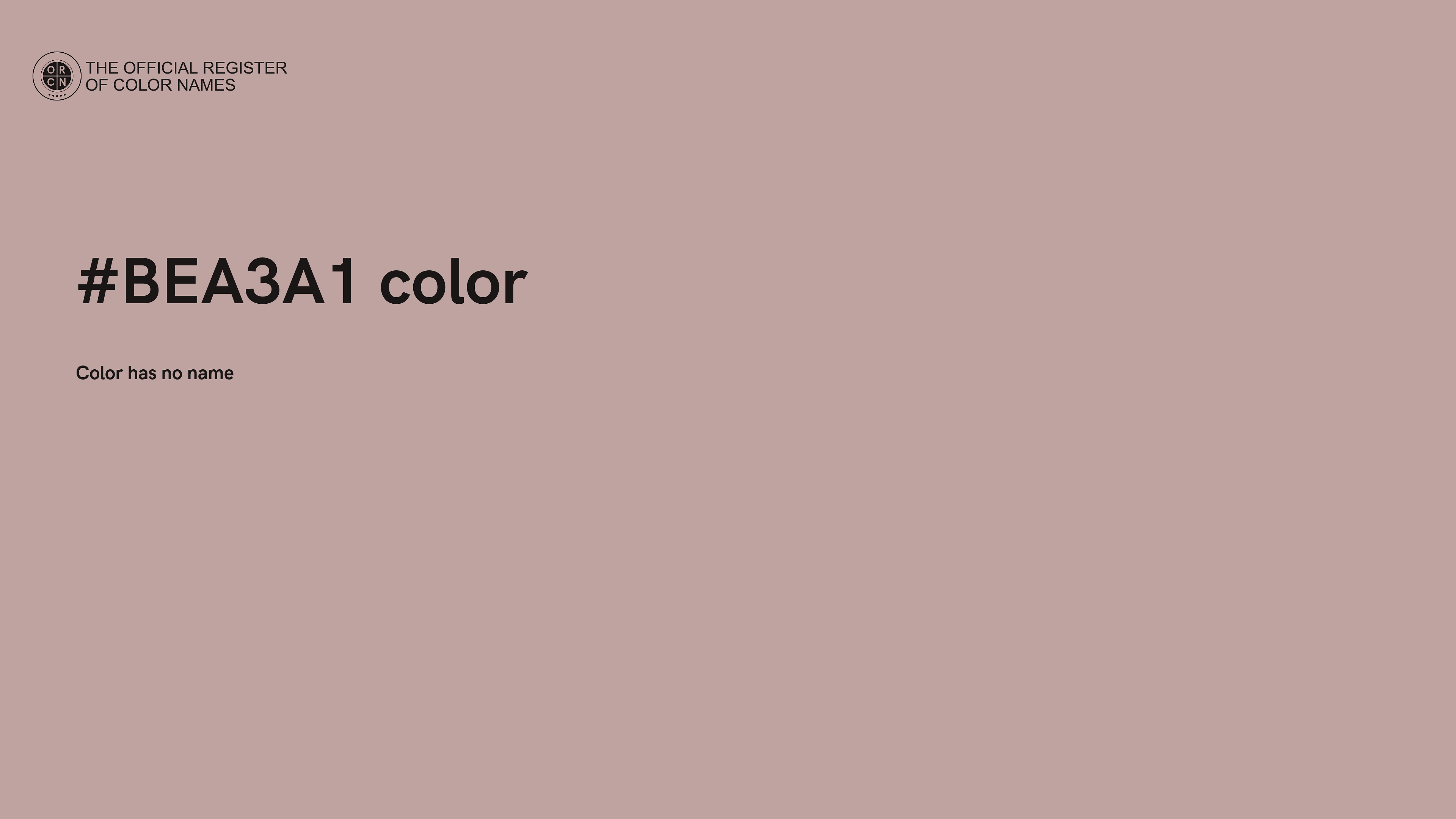 The digital color HEX #BEA3A1 belongs to the Red Color Family featuring Low Saturation (Saturation Family) and Very Light (Brightness Family).