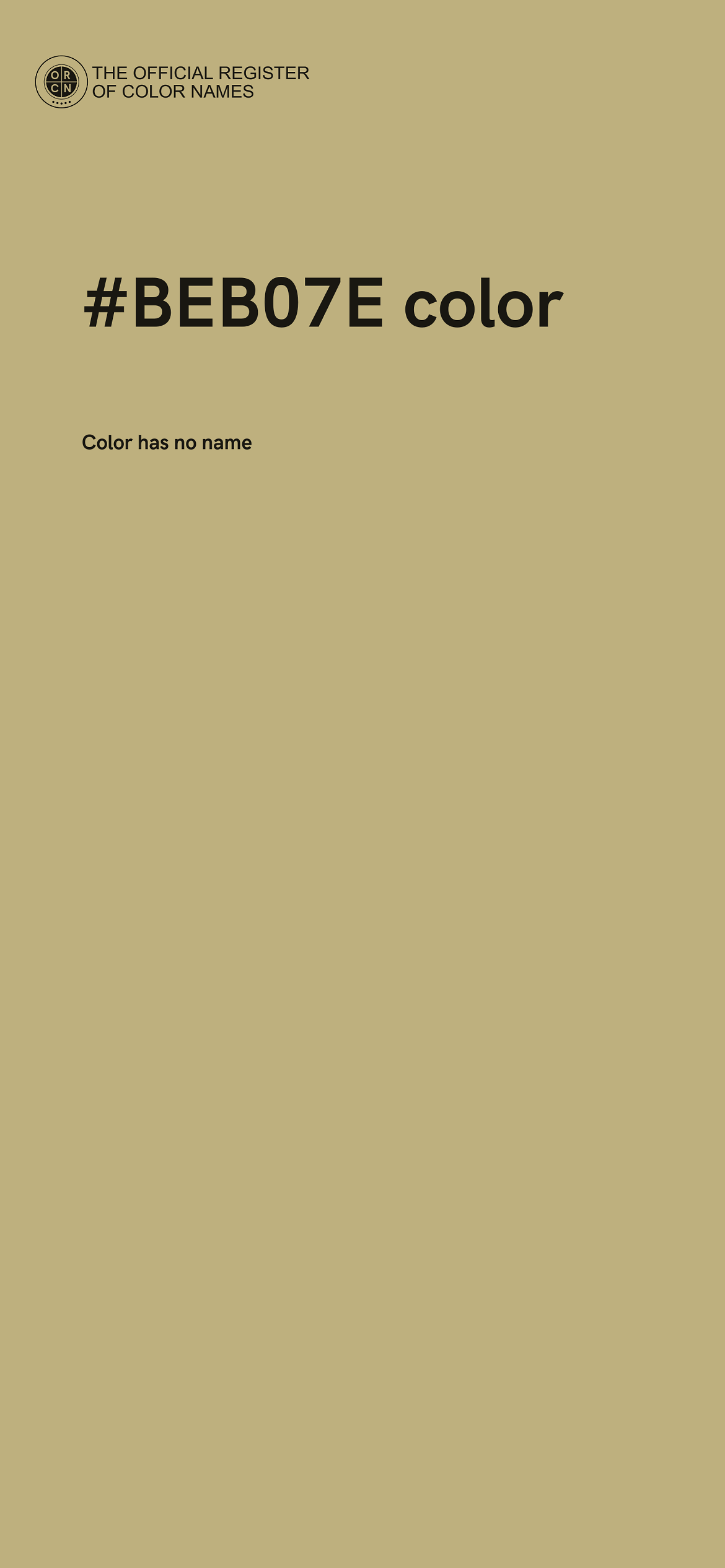 For printing in non digital world, #BEB07E is represented in CMYK as 0 Cyan, 5 Magenta, 25 Yellow, and 25 Black (Key) (C:0 M:5 Y:25 K:25).