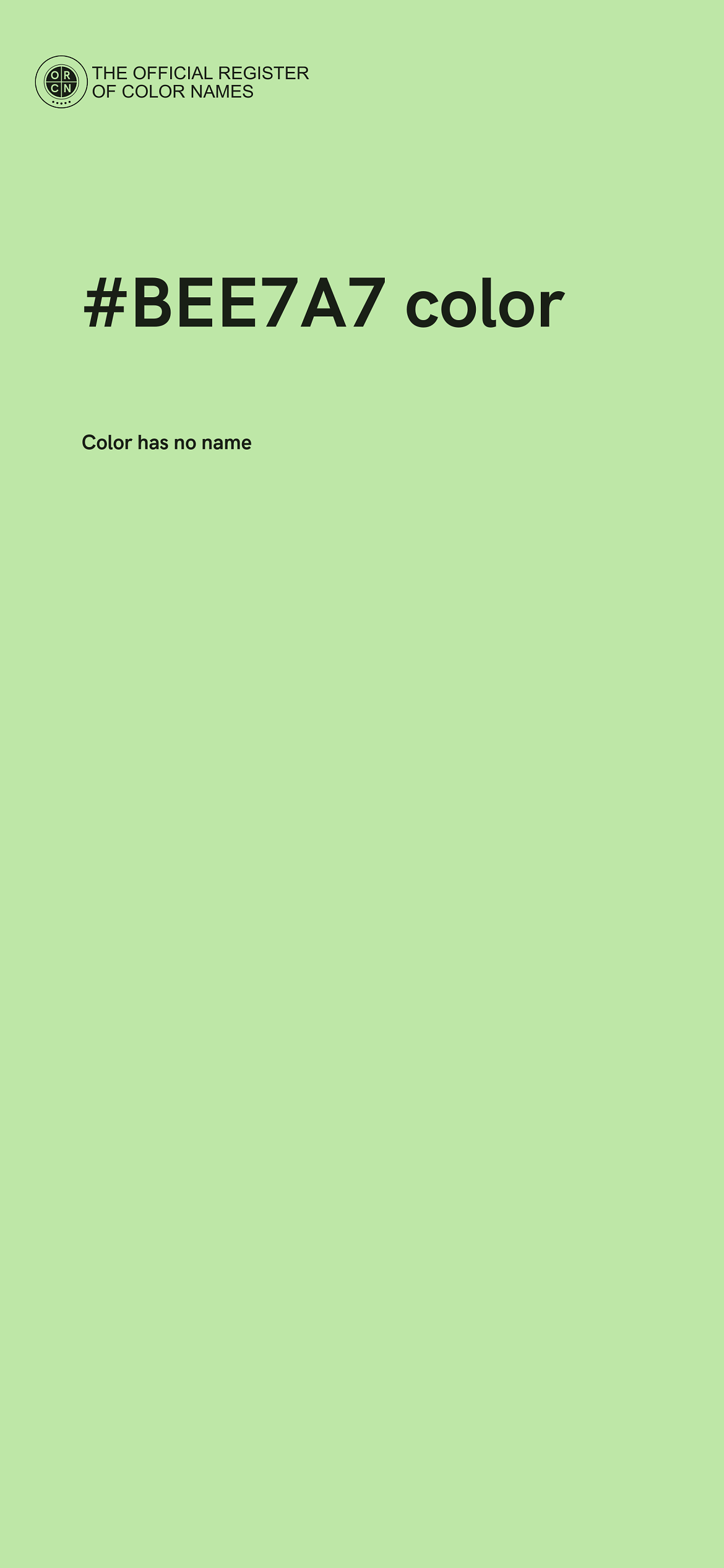 #BEE7A7 color image