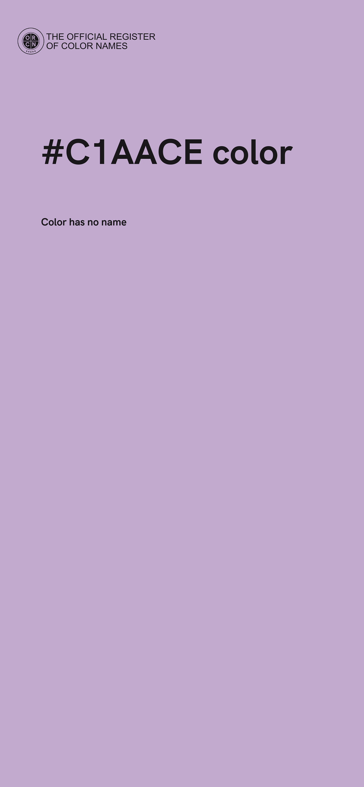 The digital color HEX #C1AACE belongs to the Violet Color Family featuring Mild Saturation (Saturation Family) and Very Light (Brightness Family).