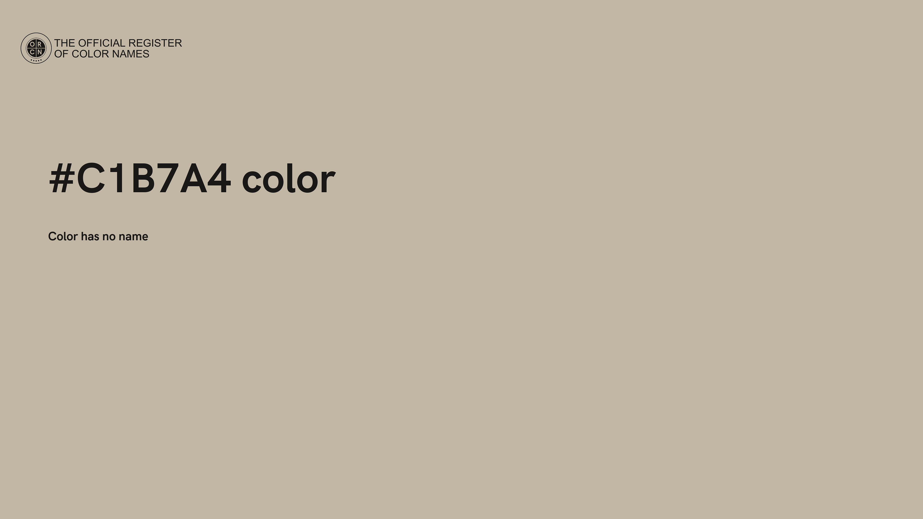 The digital color HEX #C1B7A4 belongs to the Orange Color Family featuring Low Saturation (Saturation Family) and Very Light (Brightness Family).