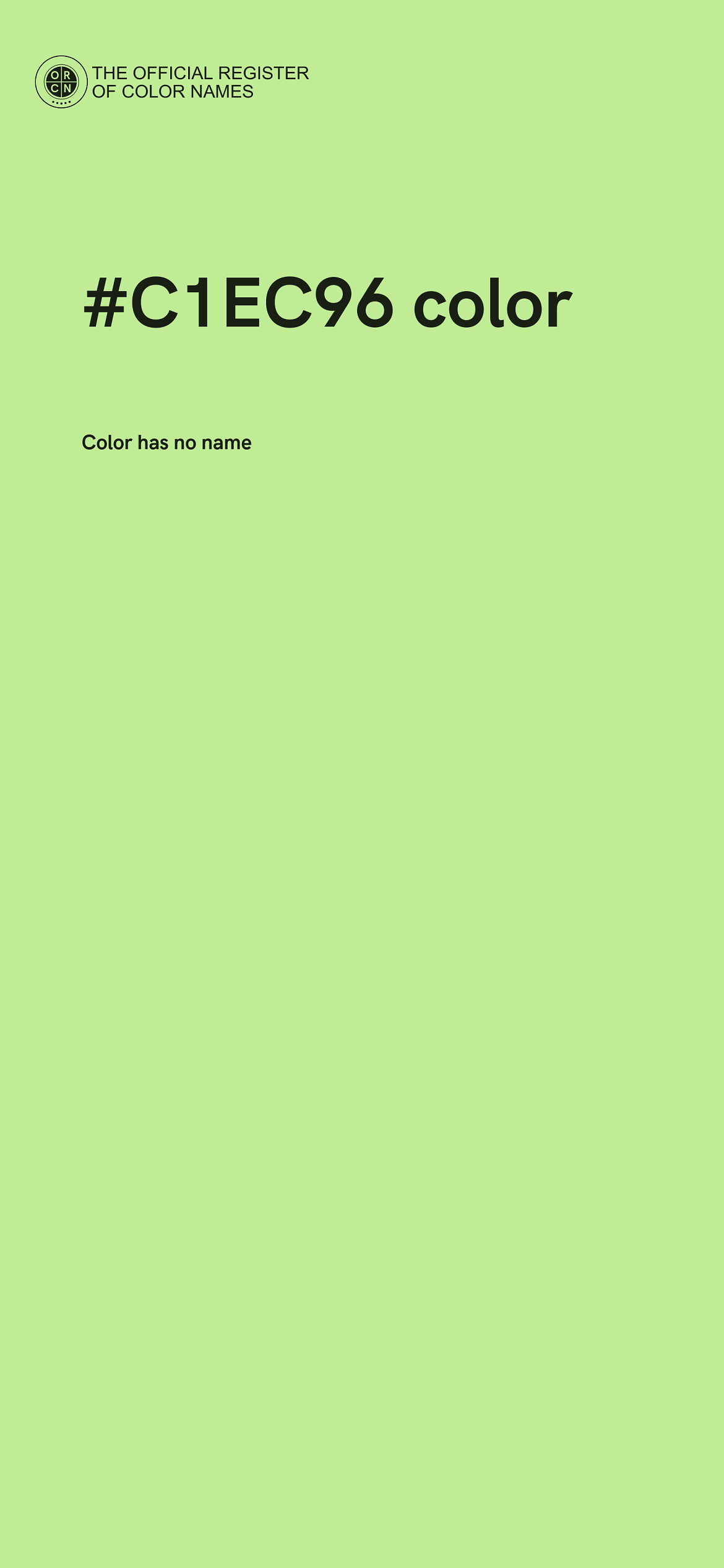 For printing in non digital world, #C1EC96 is represented in CMYK as 17 Cyan, 0 Magenta, 34 Yellow, and 7 Black (Key) (C:17 M:0 Y:34 K:7).