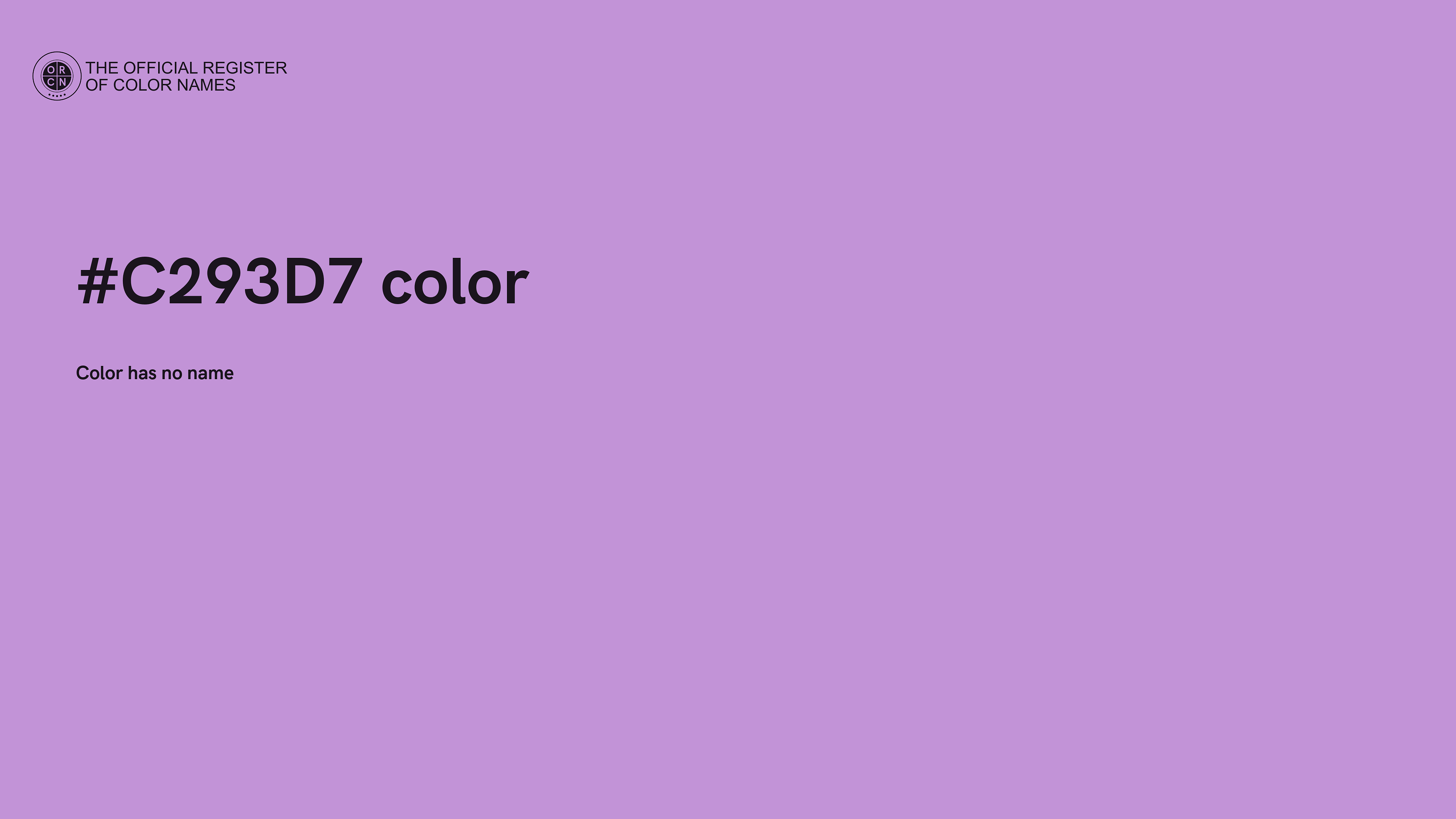 The digital color HEX #C293D7 belongs to the Violet Color Family featuring Moderate Saturation (Saturation Family) and Very Light (Brightness Family).