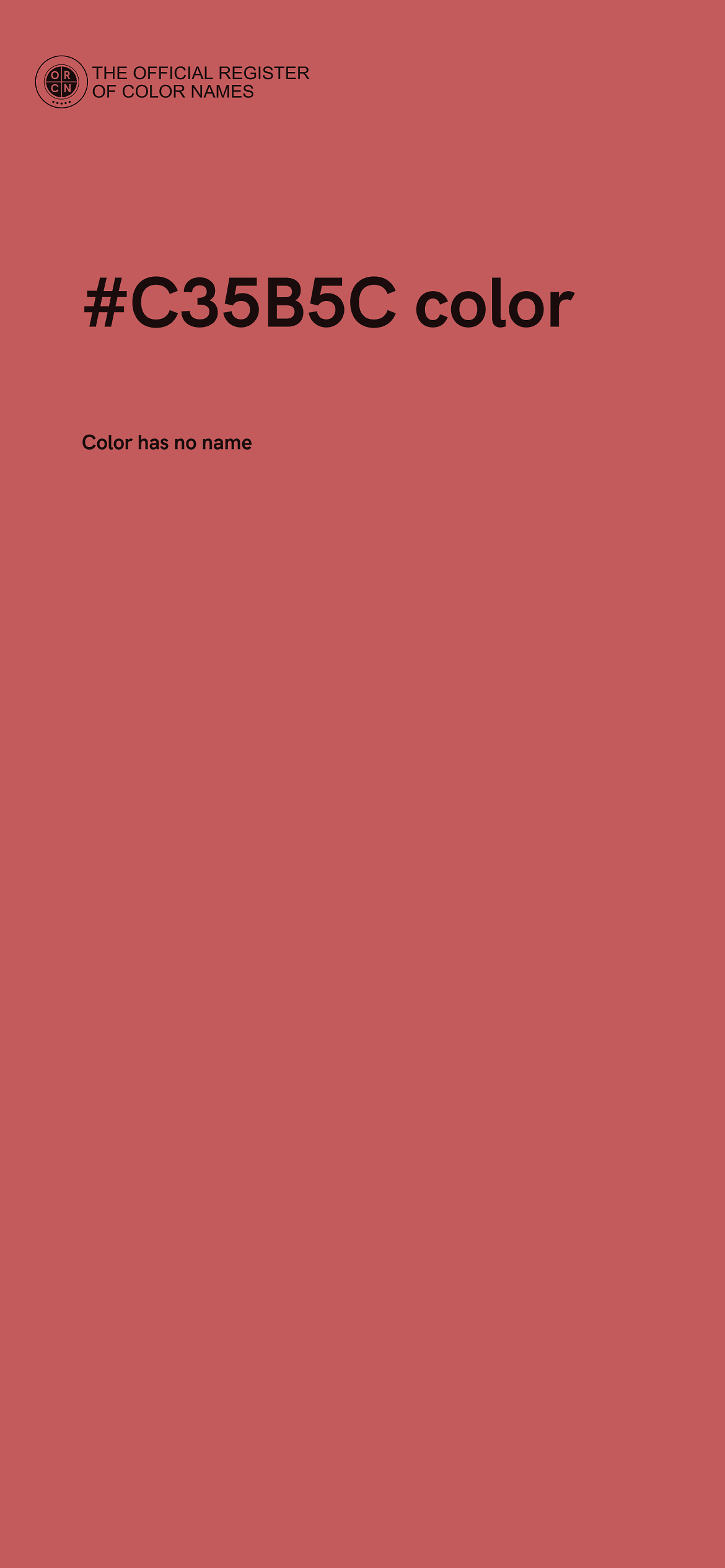 For printing in non digital world, #C35B5C is represented in CMYK as 0 Cyan, 41 Magenta, 40 Yellow, and 24 Black (Key) (C:0 M:41 Y:40 K:24).