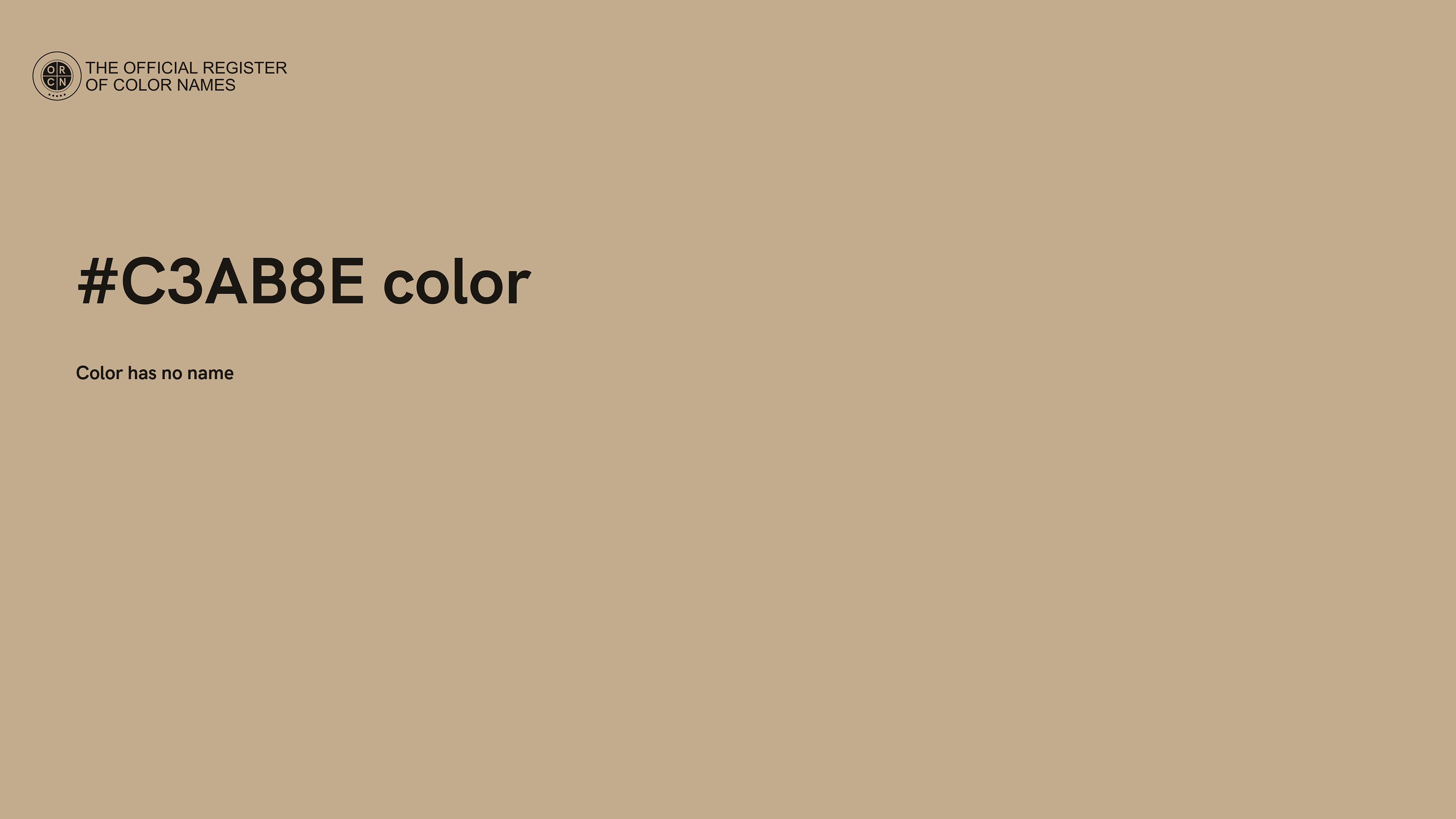 The digital color HEX #C3AB8E belongs to the Orange Color Family featuring Mild Saturation (Saturation Family) and Very Light (Brightness Family).