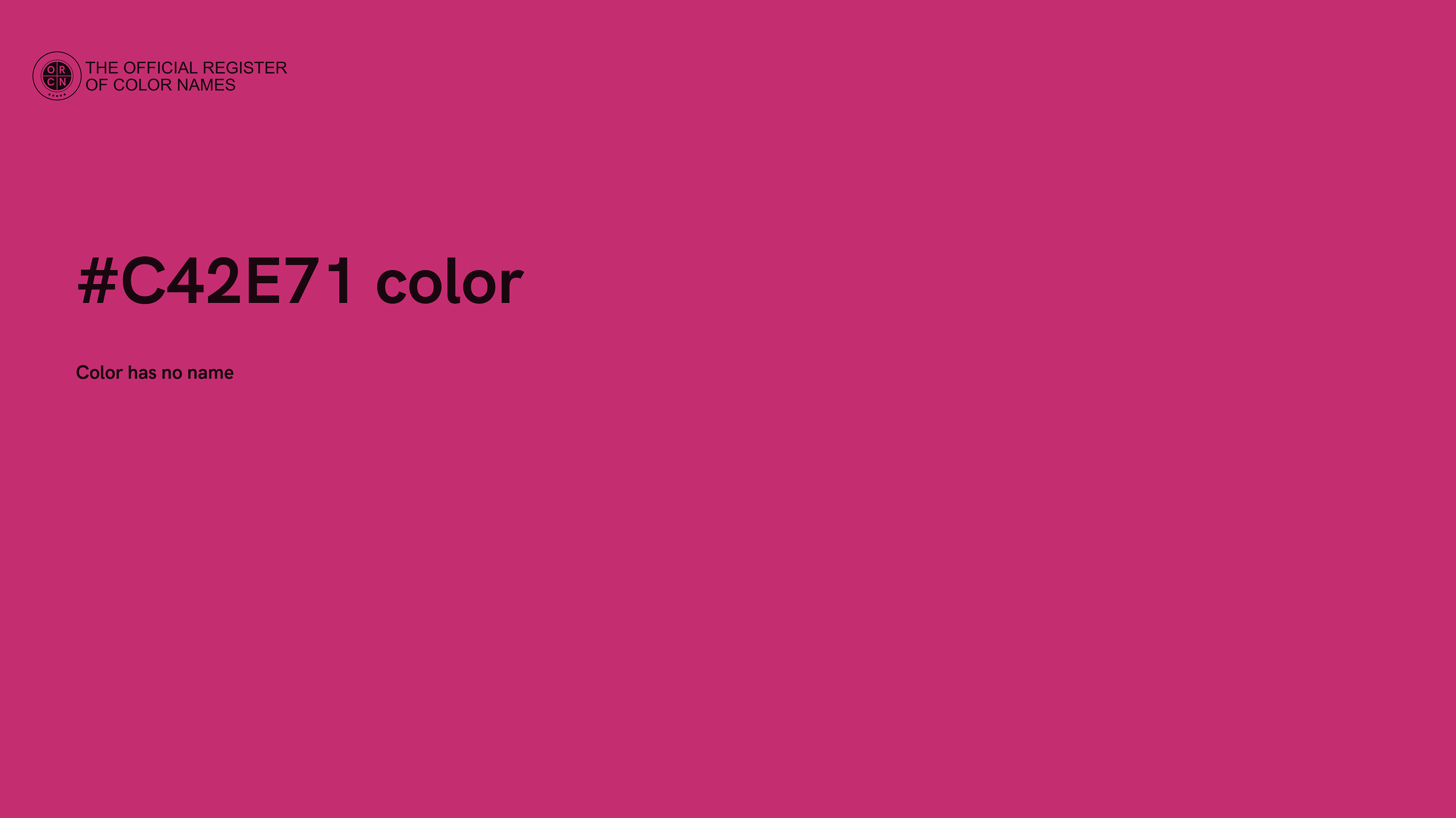 For printing in non digital world, #C42E71 is represented in CMYK as 0 Cyan, 59 Magenta, 33 Yellow, and 23 Black (Key) (C:0 M:59 Y:33 K:23).