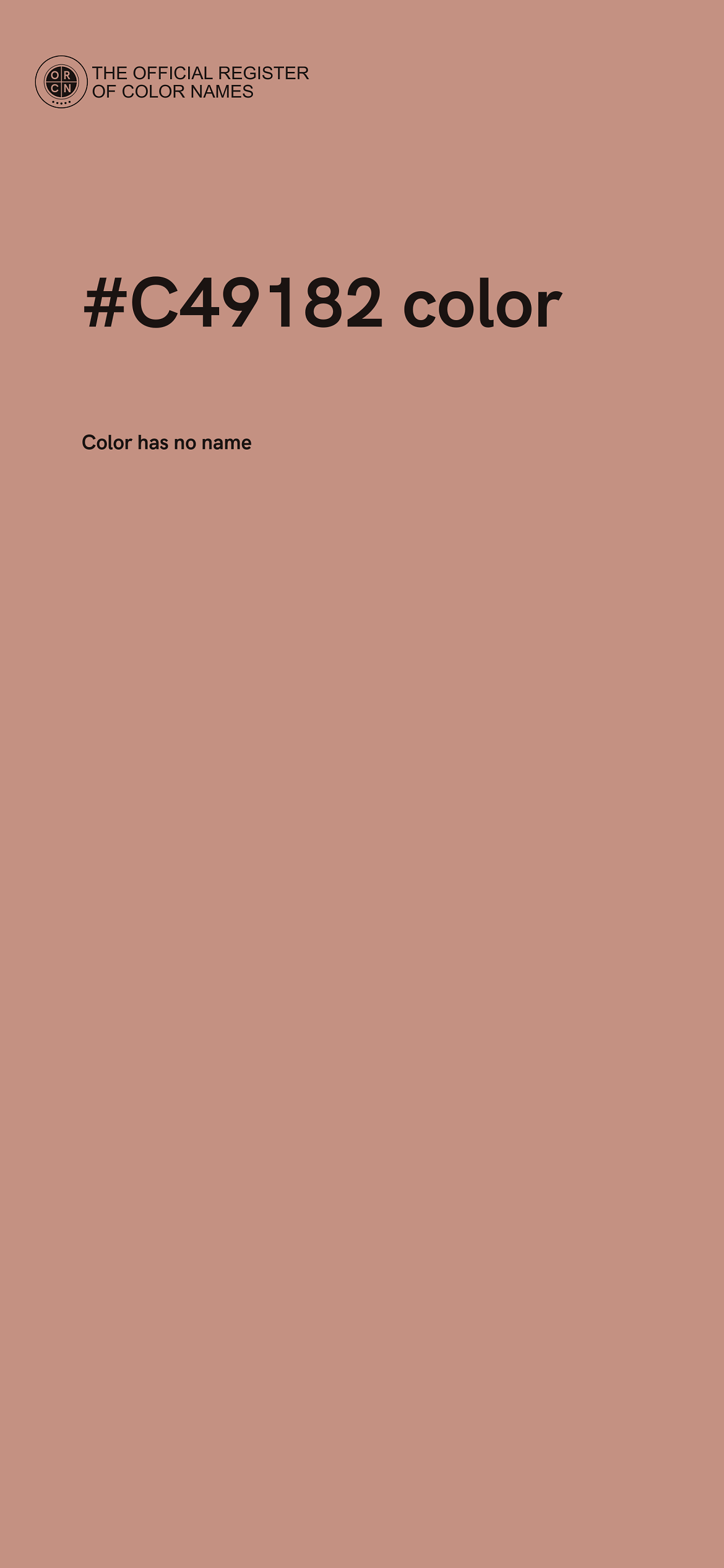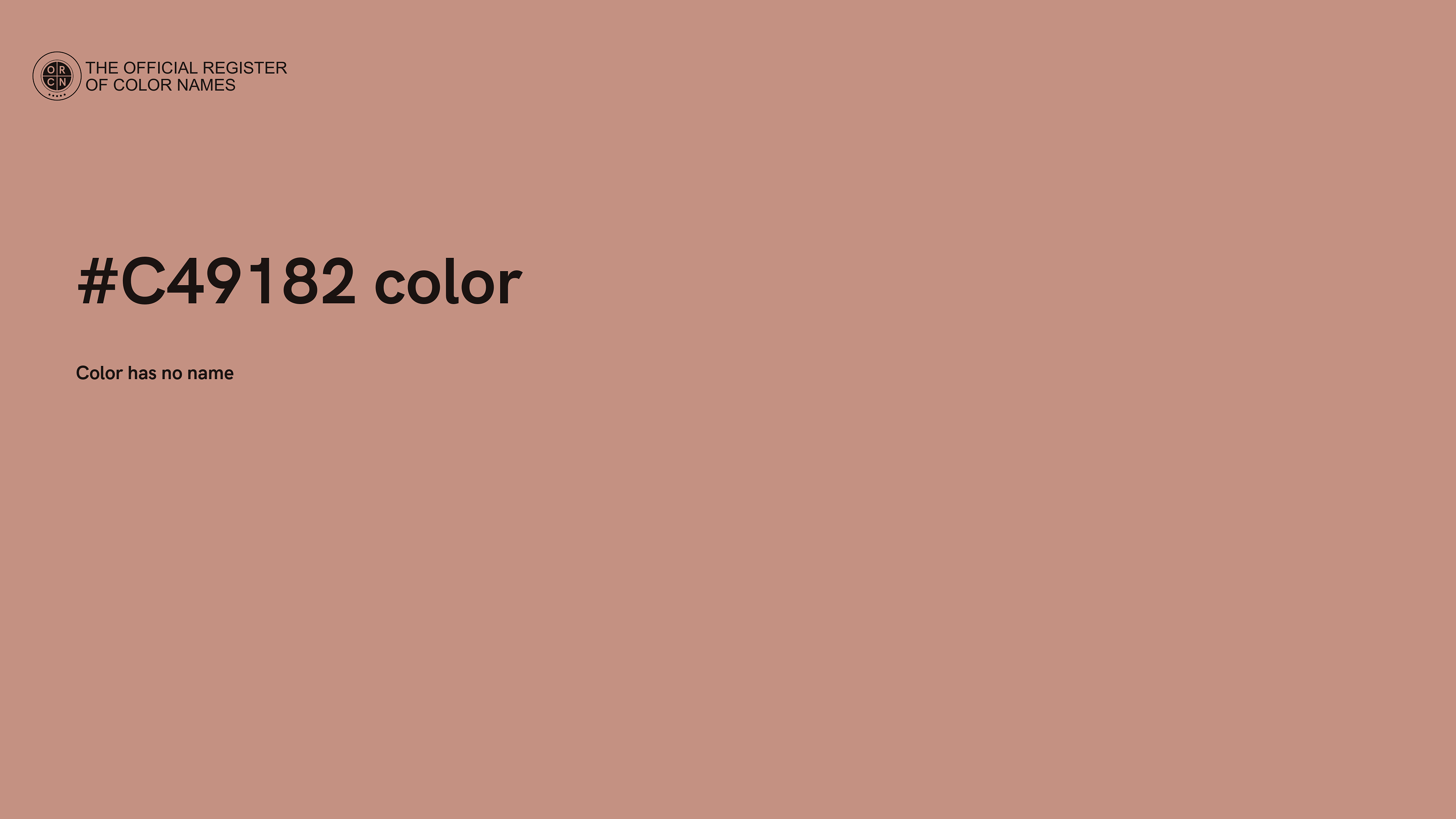 The digital color HEX #C49182 belongs to the Red Color Family featuring Mild Saturation (Saturation Family) and Very Light (Brightness Family).