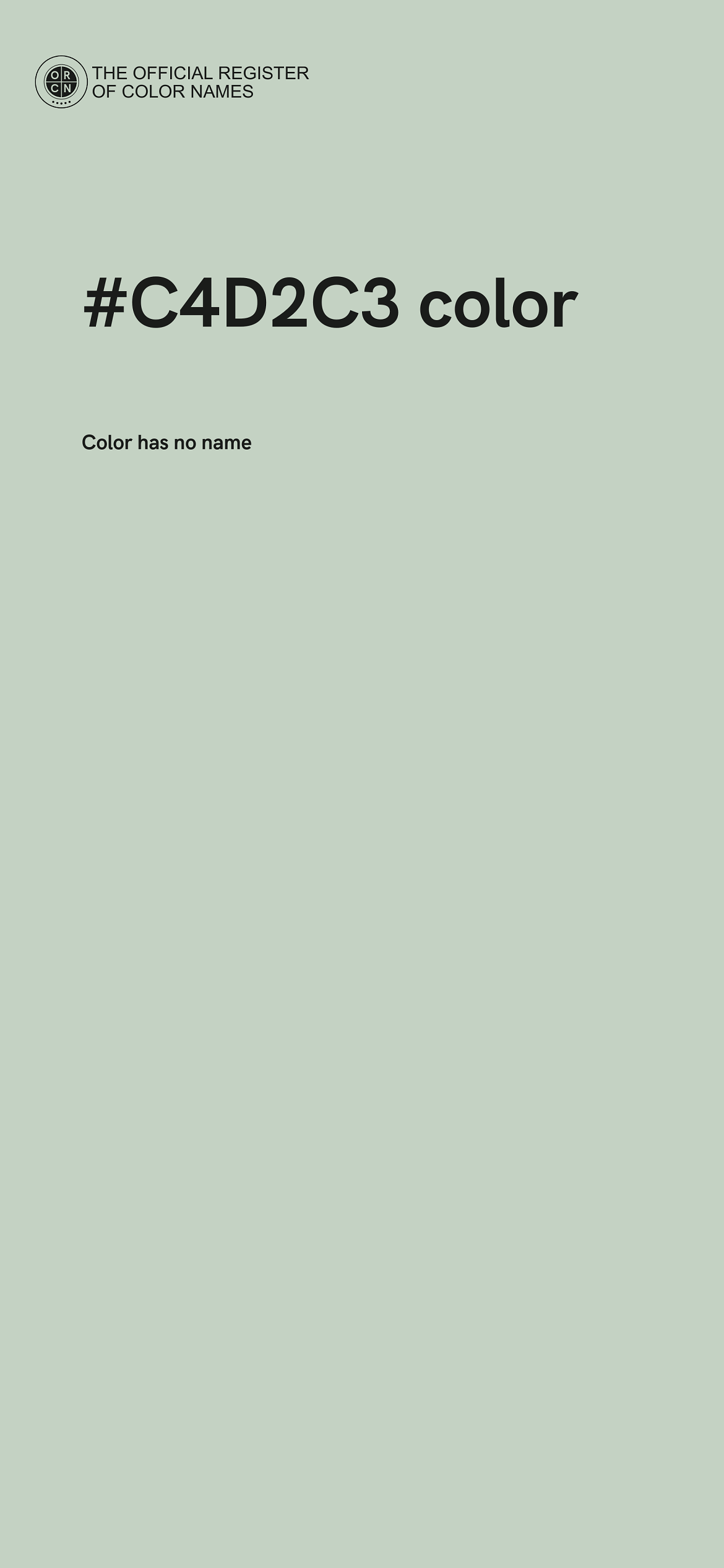 The digital color HEX #C4D2C3 belongs to the Green Color Family featuring Low Saturation (Saturation Family) and Very Light (Brightness Family).