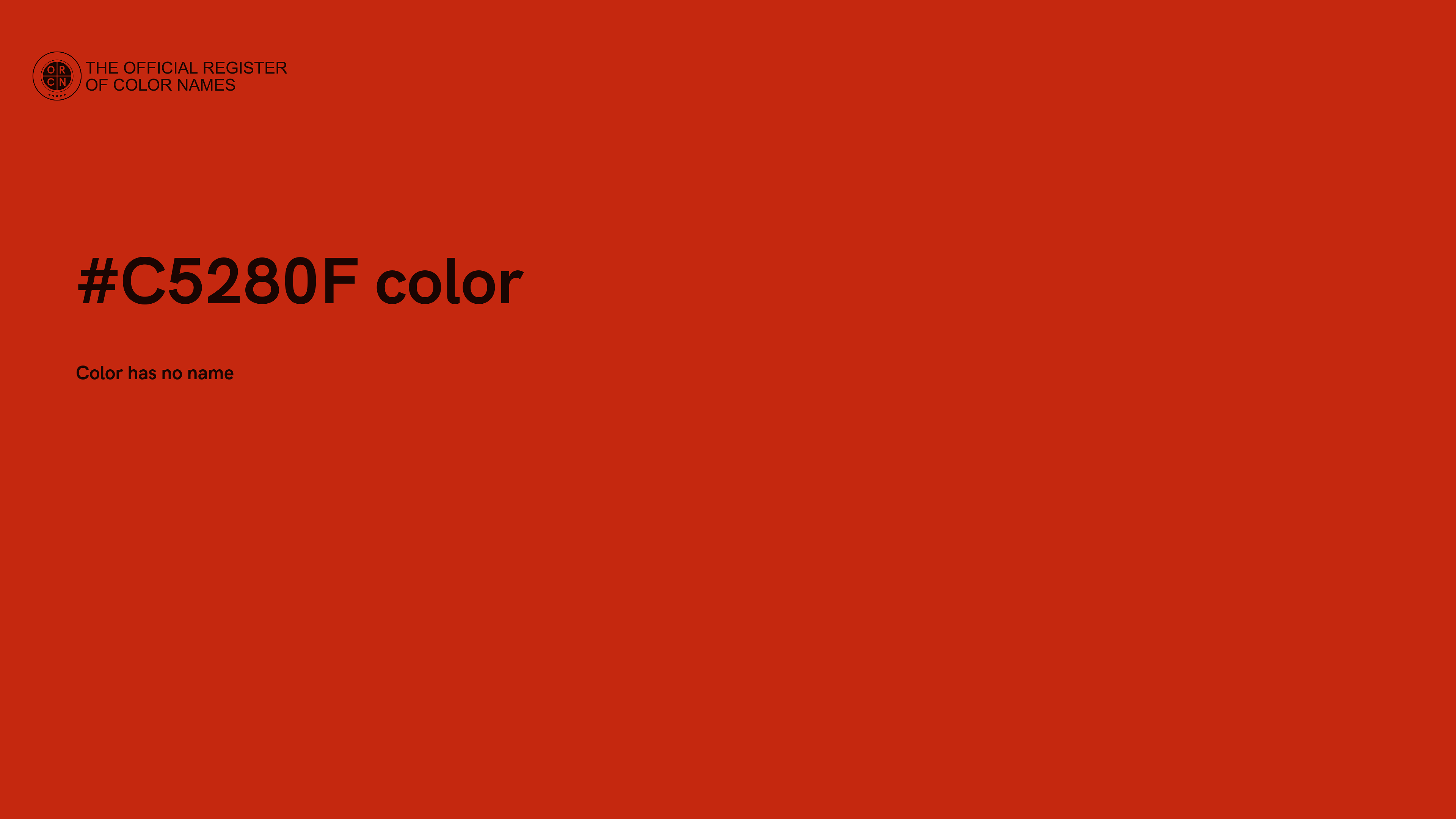 The digital color HEX #C5280F belongs to the Red Color Family featuring Full Saturation (Saturation Family) and Light (Brightness Family).