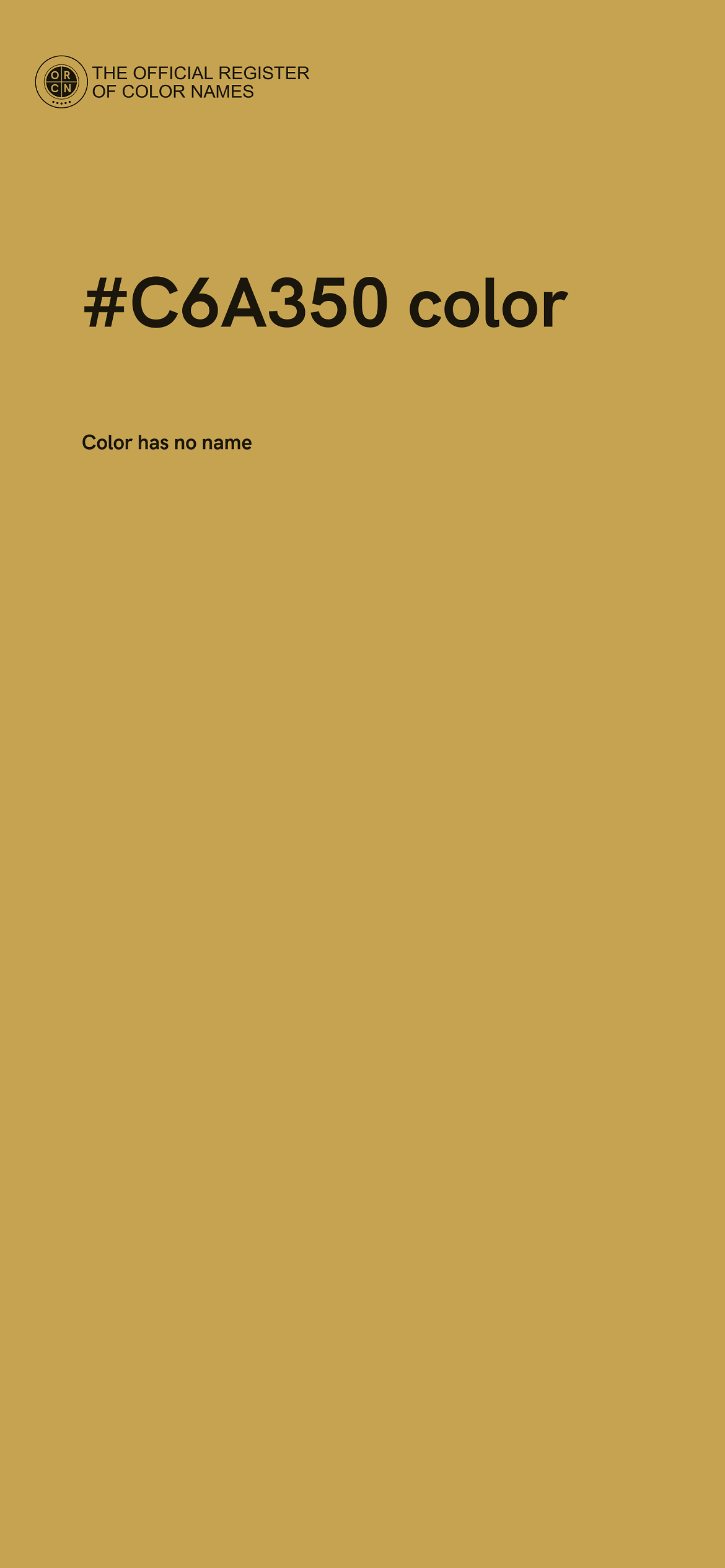 The digital color HEX #C6A350 belongs to the Orange Color Family featuring Moderate Saturation (Saturation Family) and Light (Brightness Family).