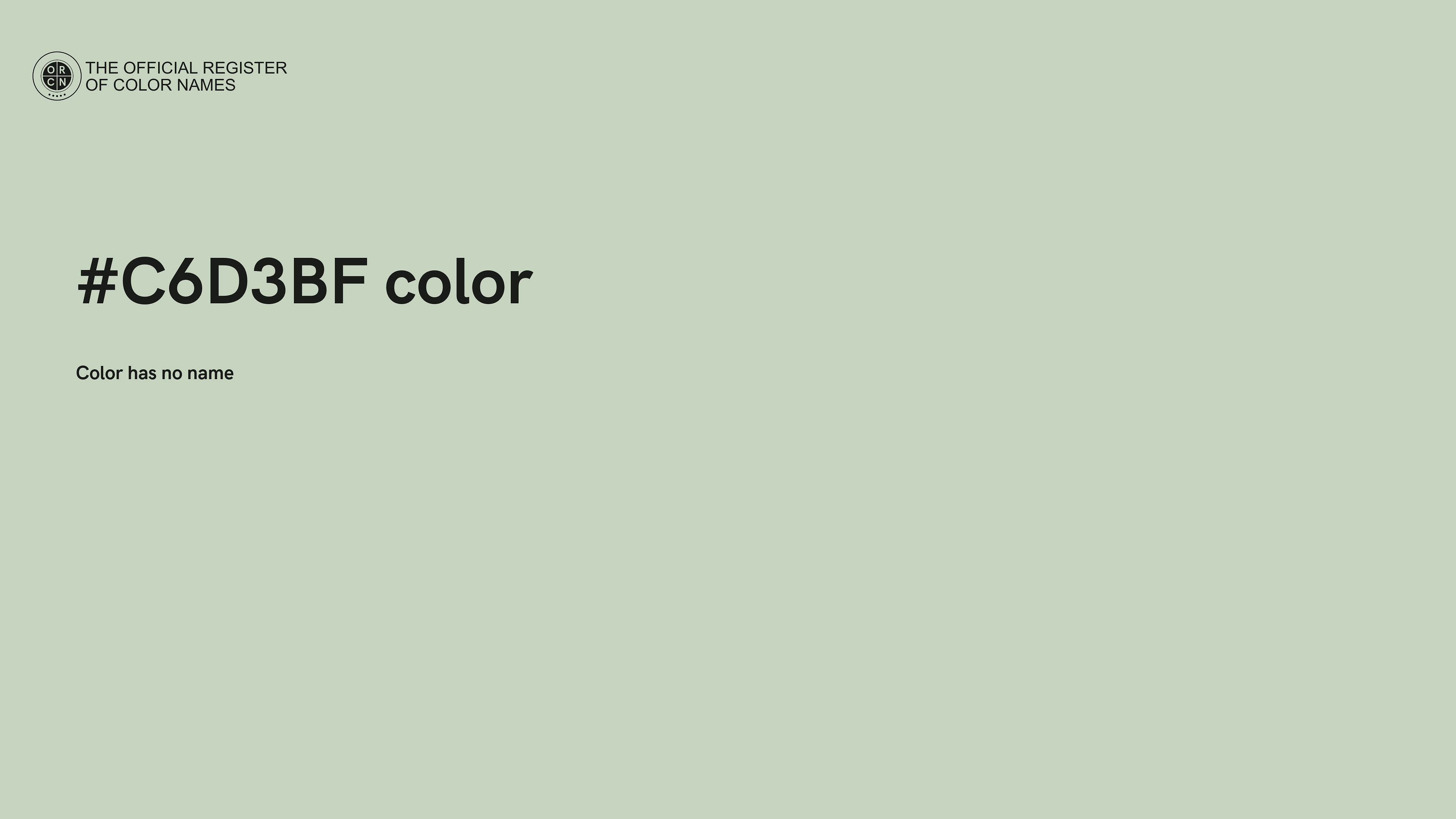 The digital color HEX #C6D3BF belongs to the Chartreuse Color Family featuring Low Saturation (Saturation Family) and Very Light (Brightness Family).