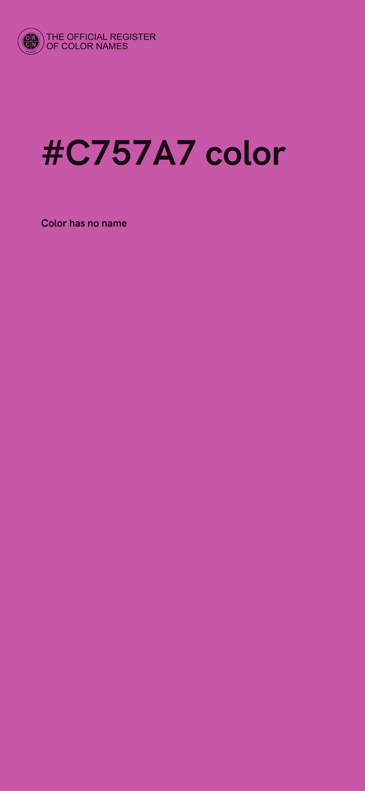 The digital color HEX #C757A7 belongs to the Rose Color Family featuring Moderate Saturation (Saturation Family) and Light (Brightness Family).