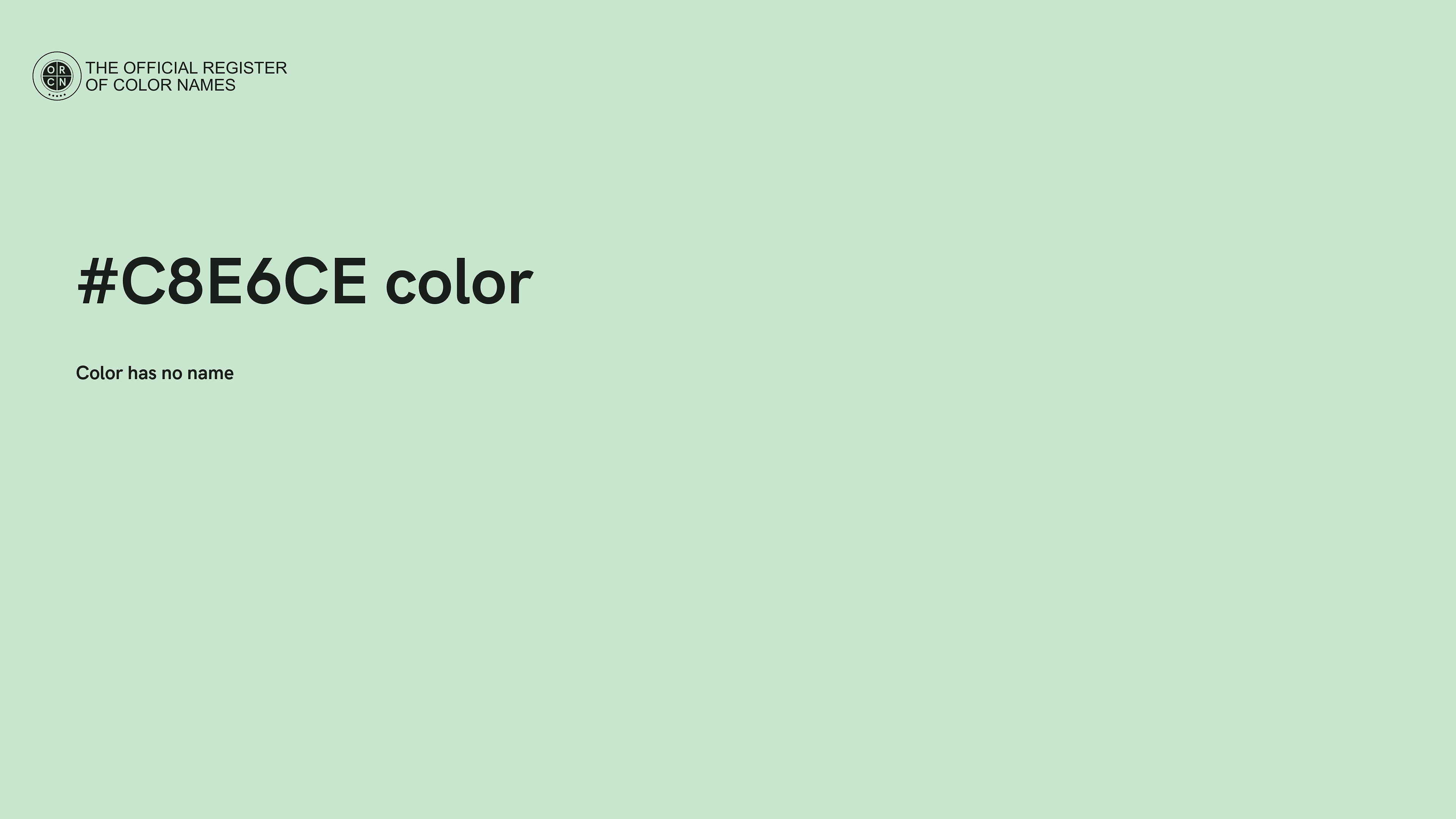 The digital color HEX #C8E6CE belongs to the Green Color Family featuring Mild Saturation (Saturation Family) and Very Light (Brightness Family).