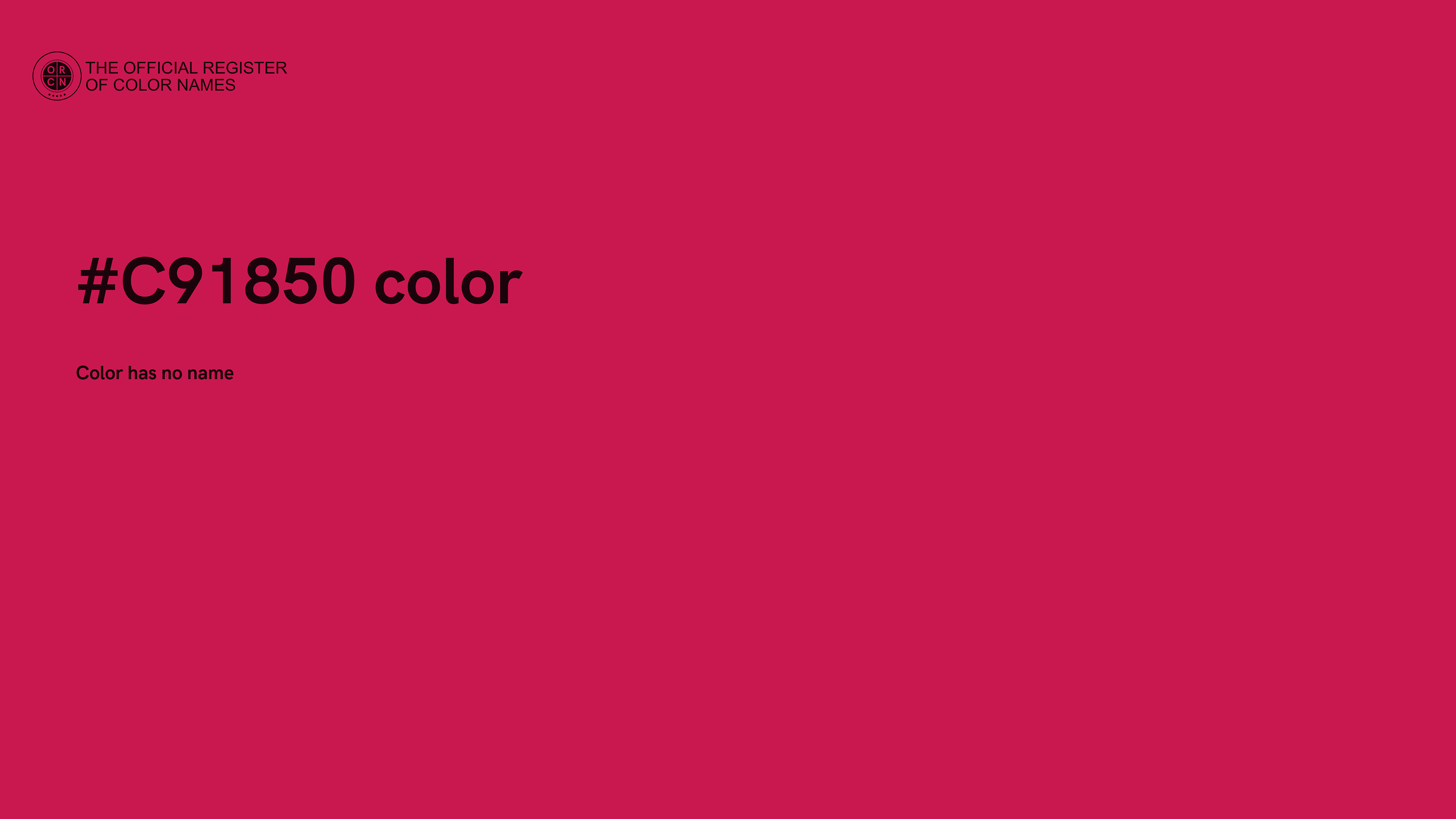 HEX code #C91850 represent the color in hexadecimal format by combining three values – the amounts of Red, Green and Blue (RGB). Its RGB composition is 201, 24, 80 ( rgb(201, 24, 80) ), which breaks down into 78.8% of Red, 9.4% Green and 31.4% Blue.