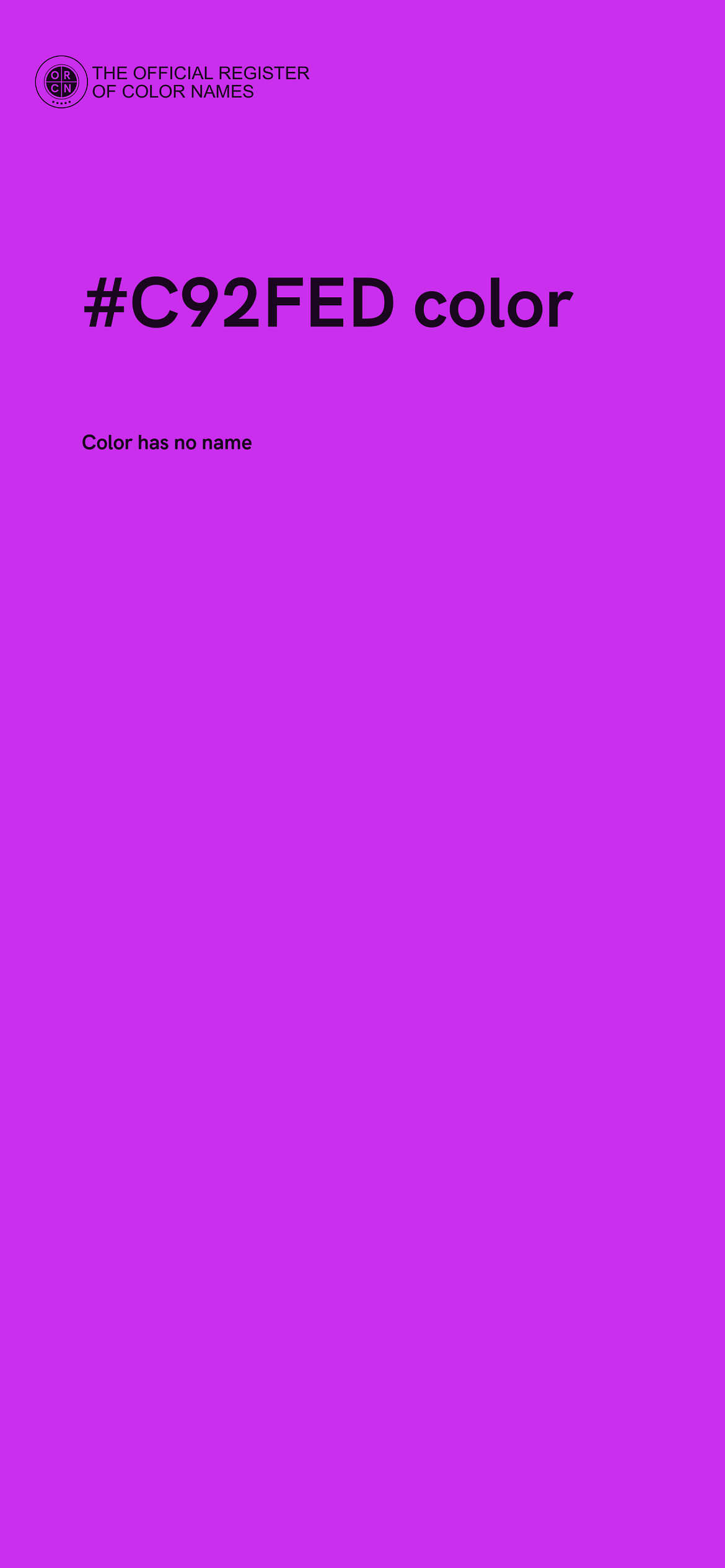 The digital color HEX #C92FED belongs to the Magenta Color Family featuring High Saturation (Saturation Family) and Light (Brightness Family).