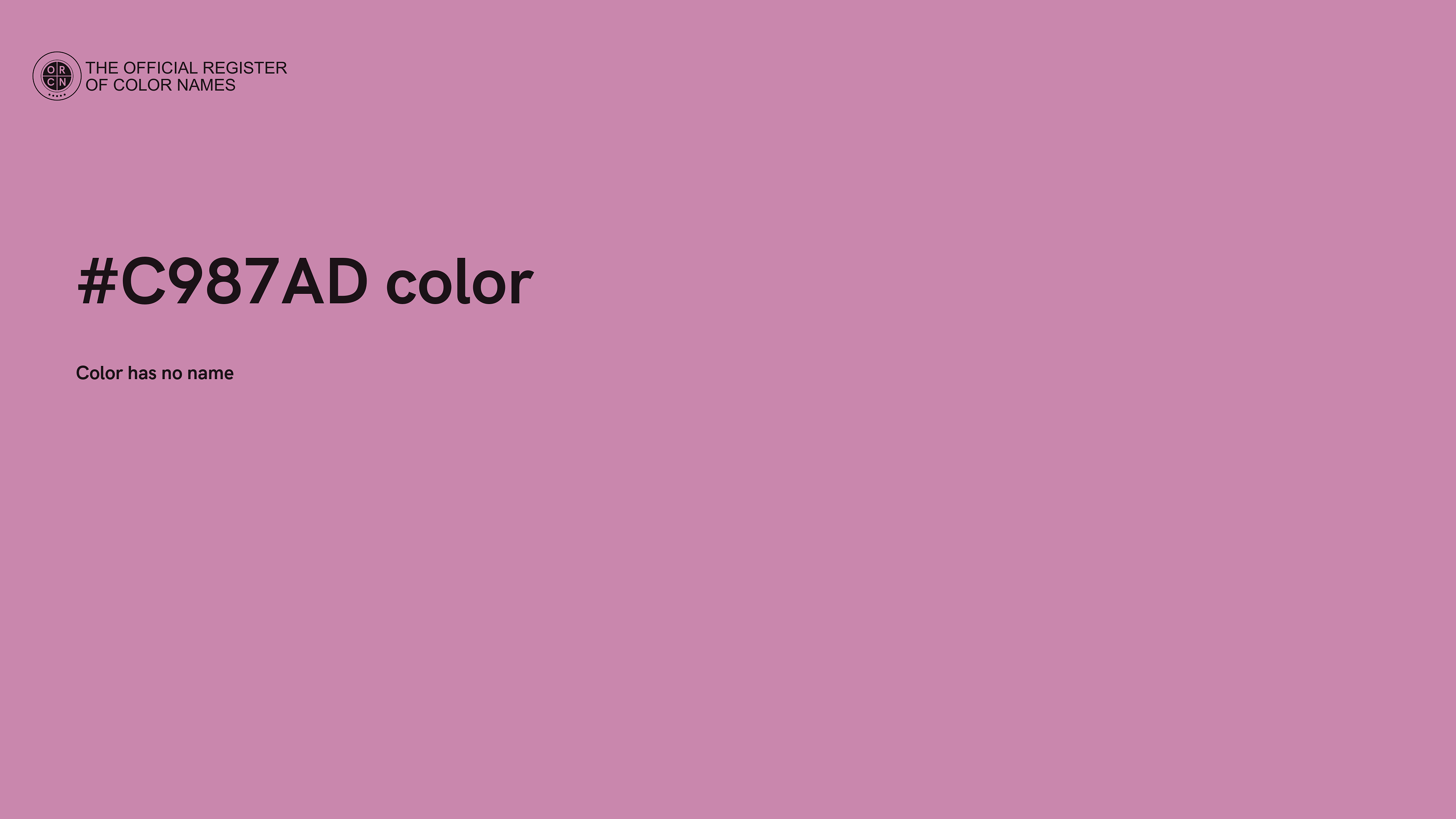 The digital color HEX #C987AD belongs to the Rose Color Family featuring Mild Saturation (Saturation Family) and Very Light (Brightness Family).