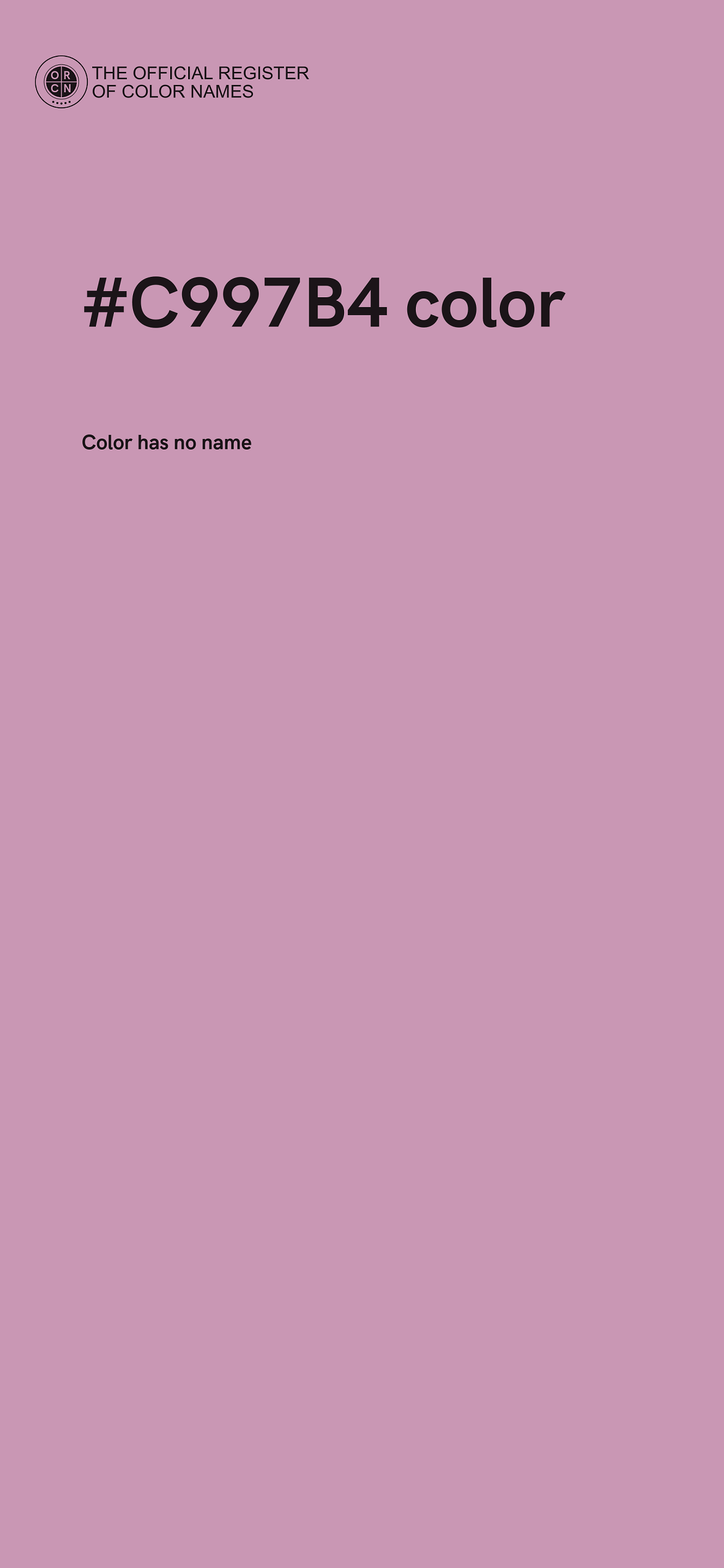 The digital color HEX #C997B4 belongs to the Rose Color Family featuring Mild Saturation (Saturation Family) and Very Light (Brightness Family).