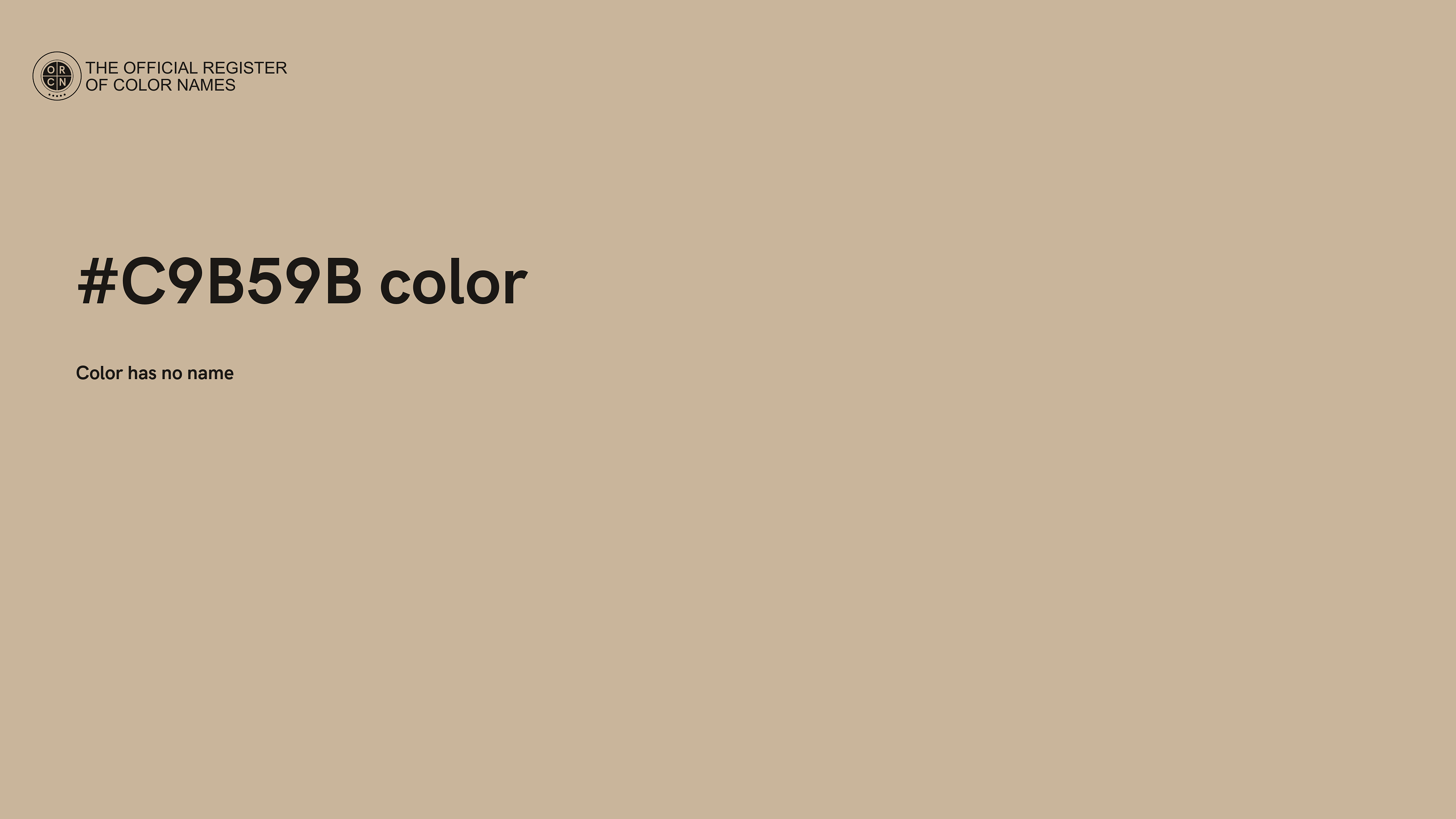 The digital color HEX #C9B59B belongs to the Orange Color Family featuring Mild Saturation (Saturation Family) and Very Light (Brightness Family).