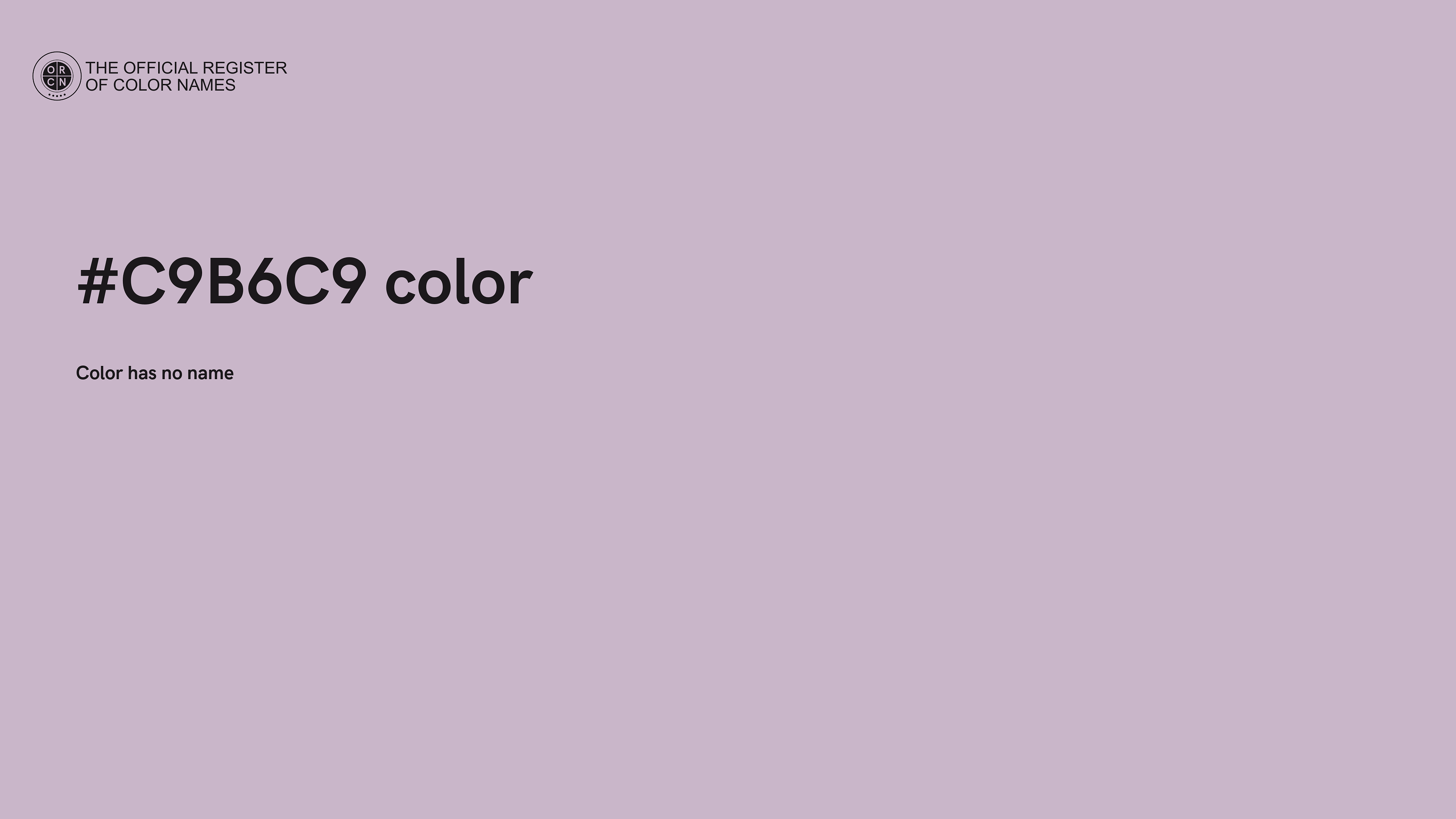 For printing in non digital world, #C9B6C9 is represented in CMYK as 0 Cyan, 7 Magenta, 0 Yellow, and 21 Black (Key) (C:0 M:7 Y:0 K:21).