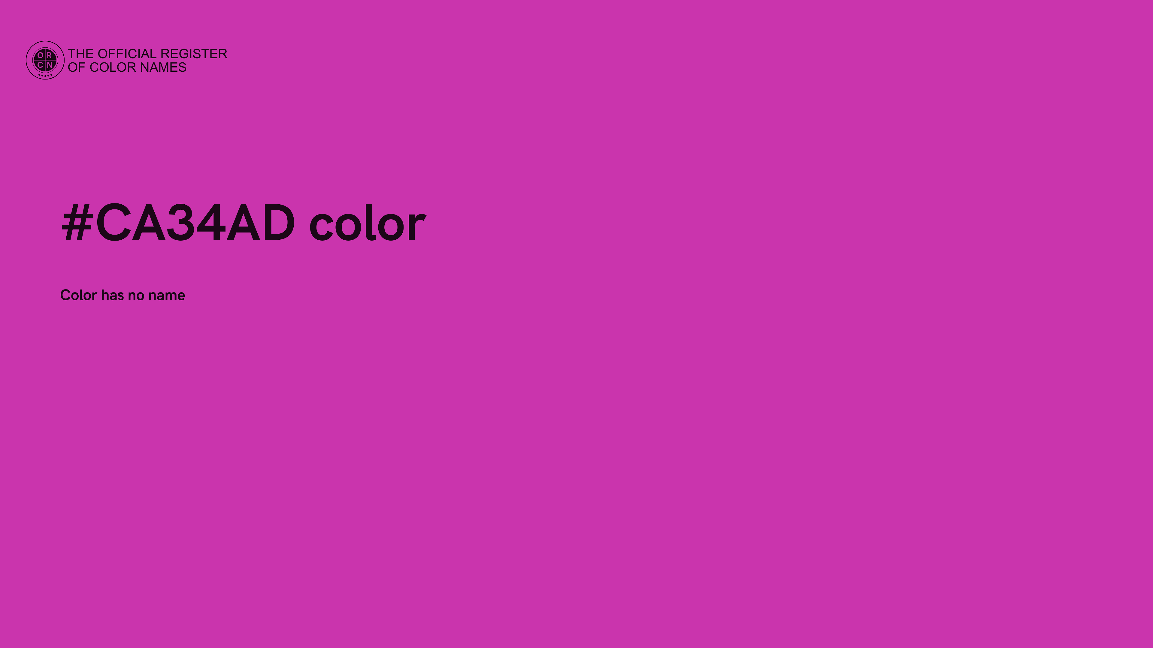 The digital color HEX #CA34AD belongs to the Magenta Color Family featuring Moderate Saturation (Saturation Family) and Light (Brightness Family).