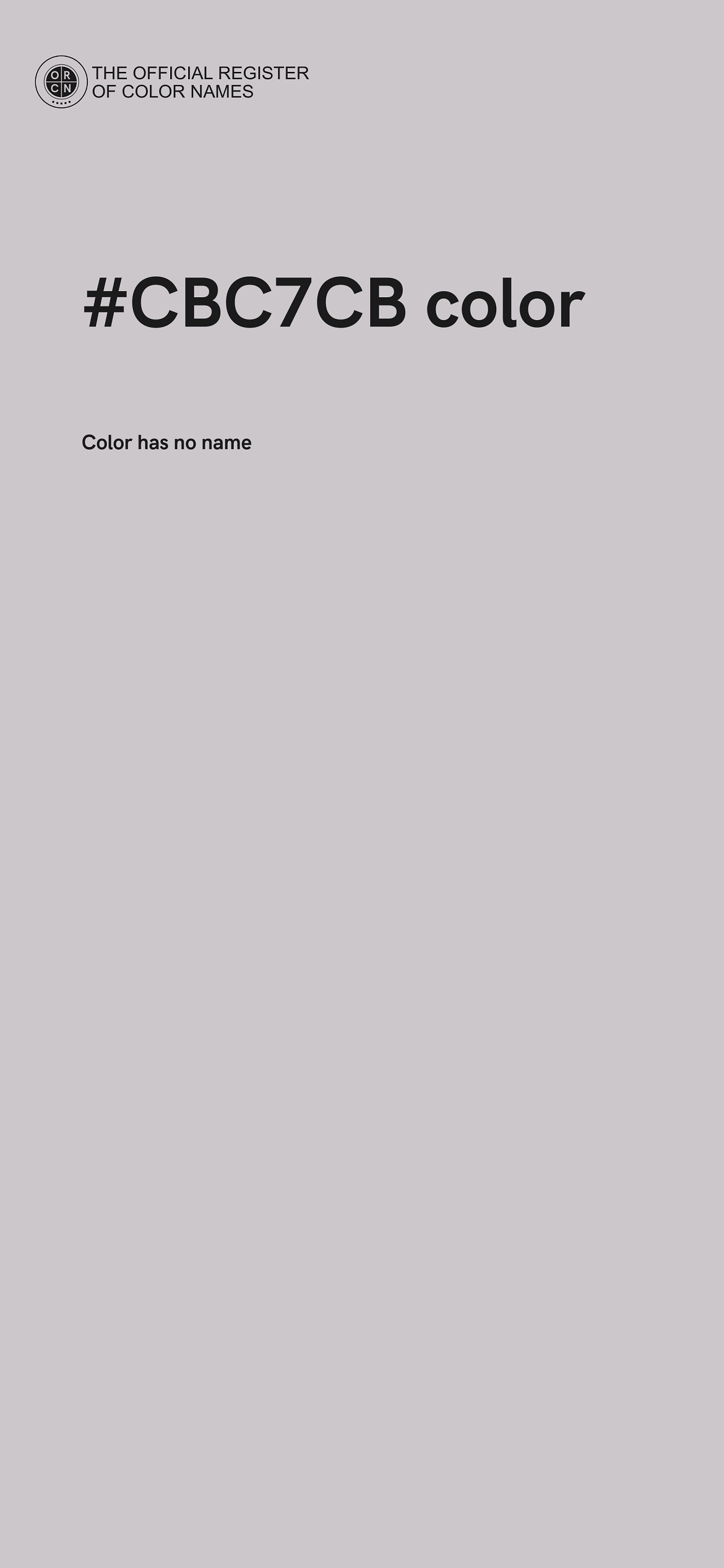 The digital color HEX #CBC7CB belongs to the Magenta Color Family featuring Desaturated (Saturation Family) and Very Light (Brightness Family).