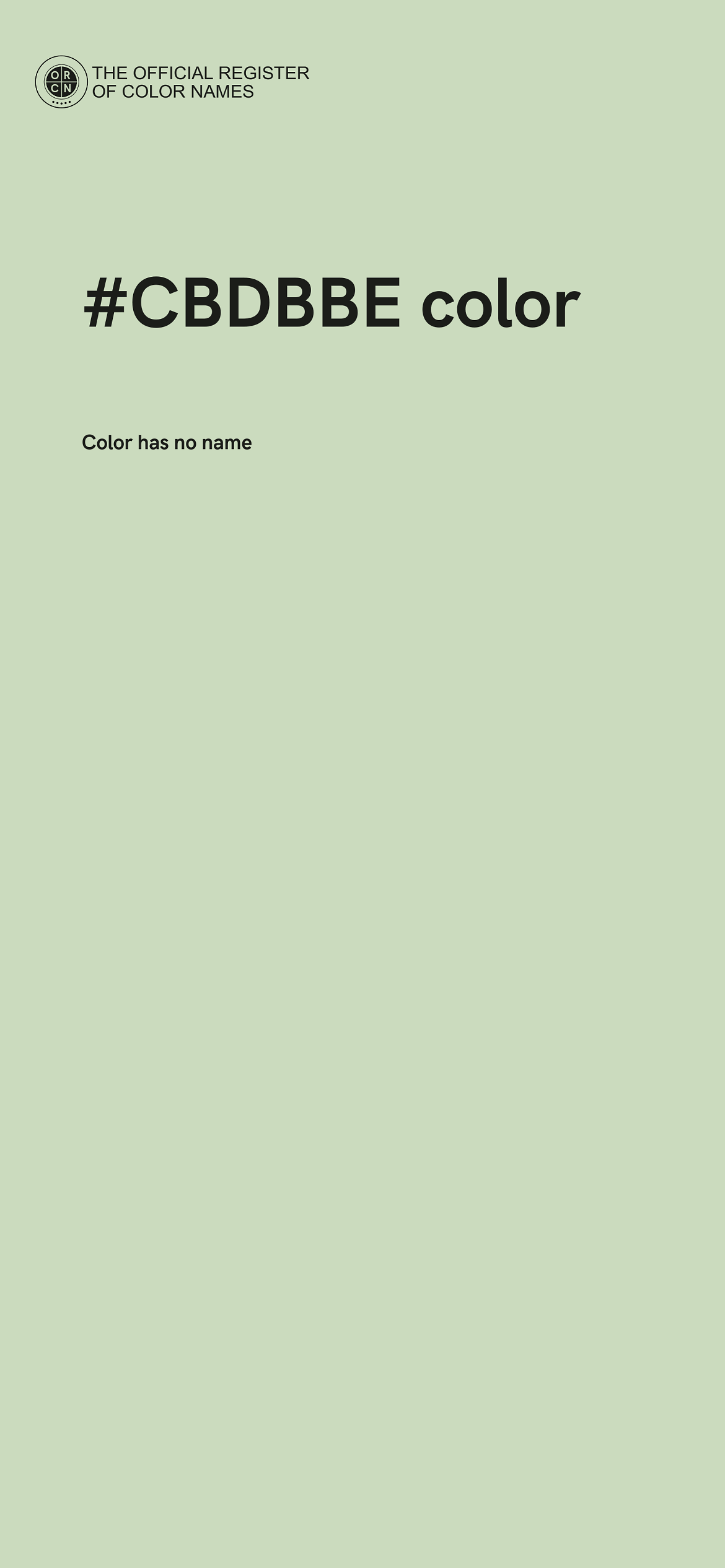 The digital color HEX #CBDBBE belongs to the Chartreuse Color Family featuring Mild Saturation (Saturation Family) and Very Light (Brightness Family).