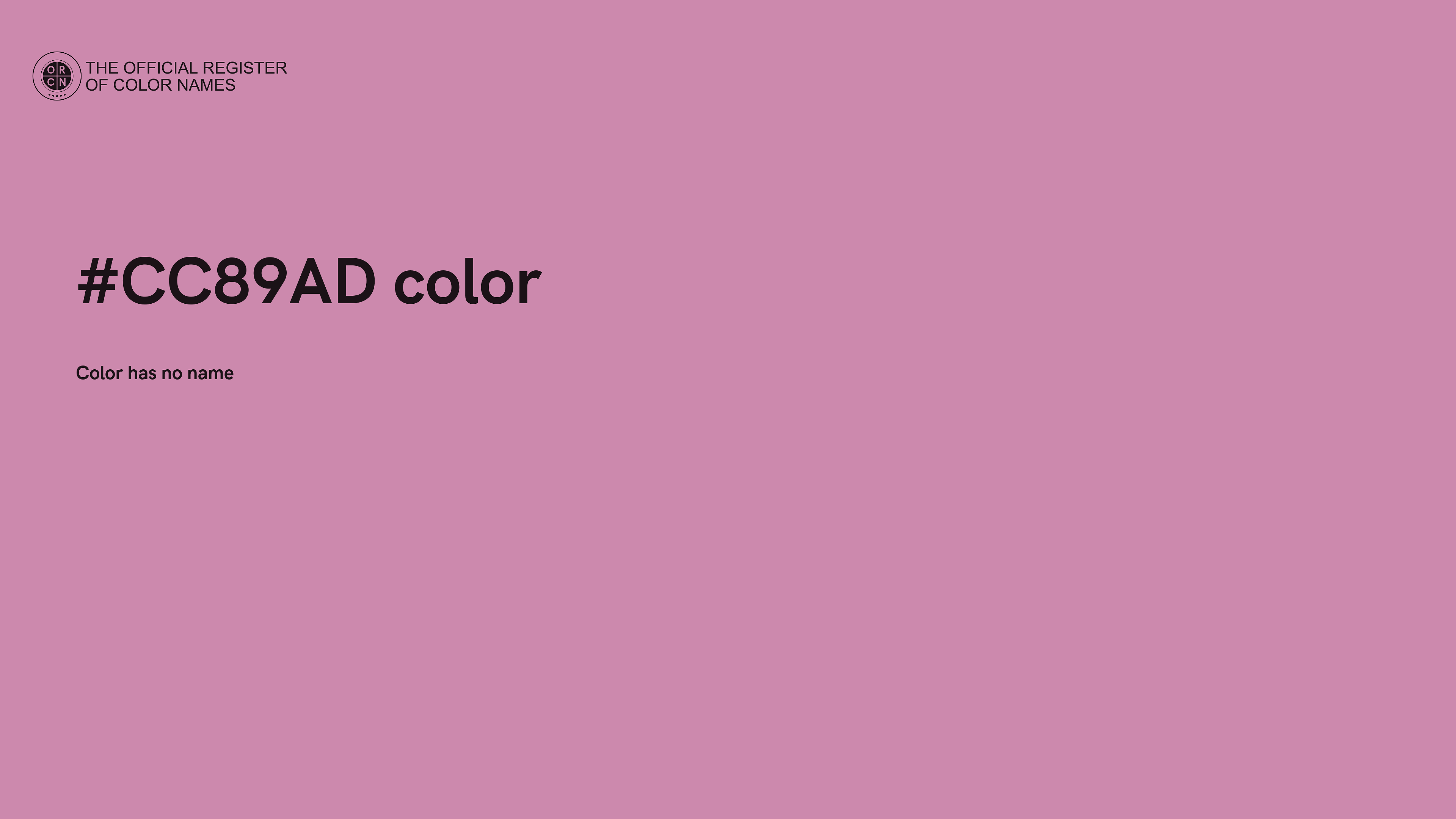The digital color HEX #CC89AD belongs to the Rose Color Family featuring Moderate Saturation (Saturation Family) and Very Light (Brightness Family).