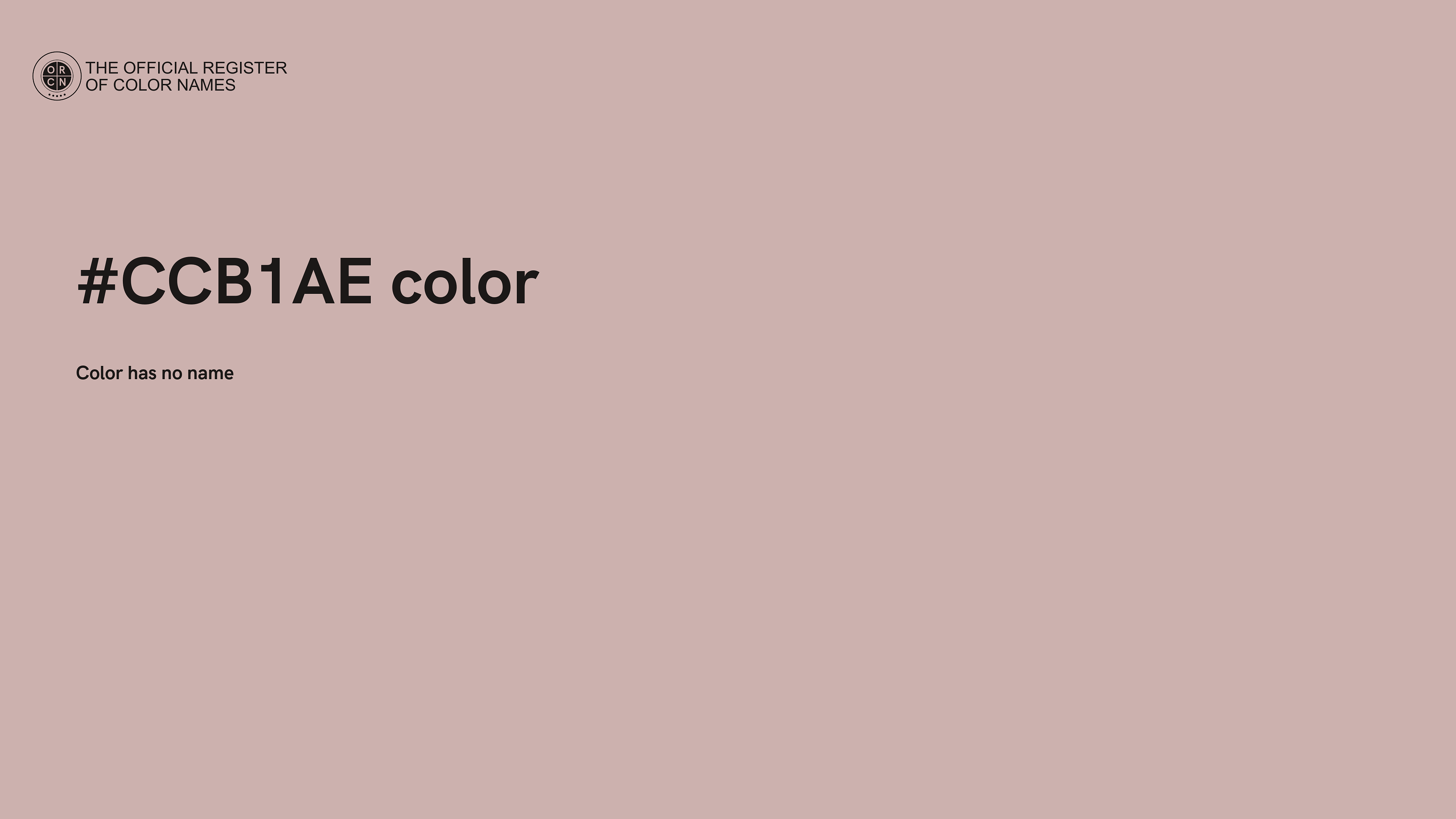 The digital color HEX #CCB1AE belongs to the Red Color Family featuring Low Saturation (Saturation Family) and Very Light (Brightness Family).