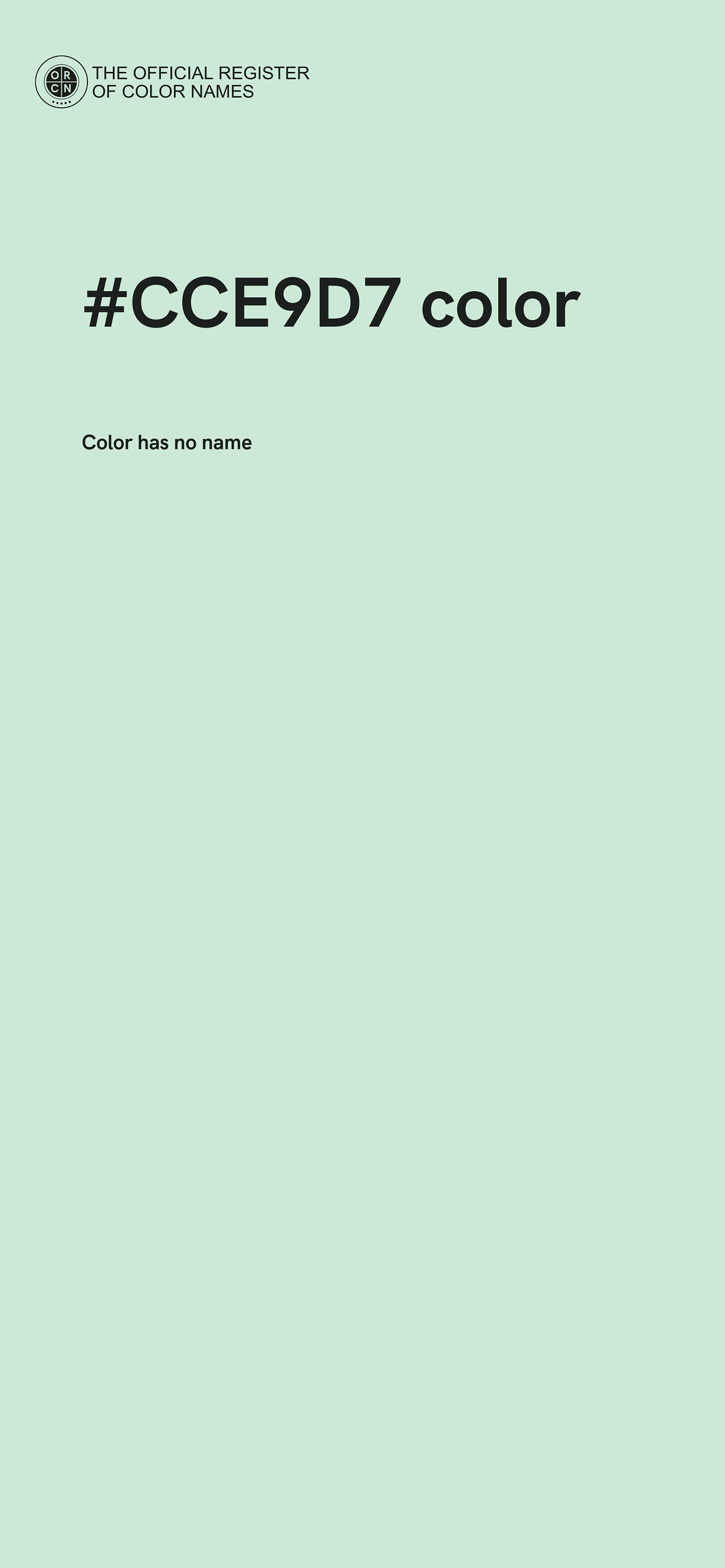 The digital color HEX #CCE9D7 belongs to the Spring Green Color Family featuring Moderate Saturation (Saturation Family) and Luminous (Brightness Family).