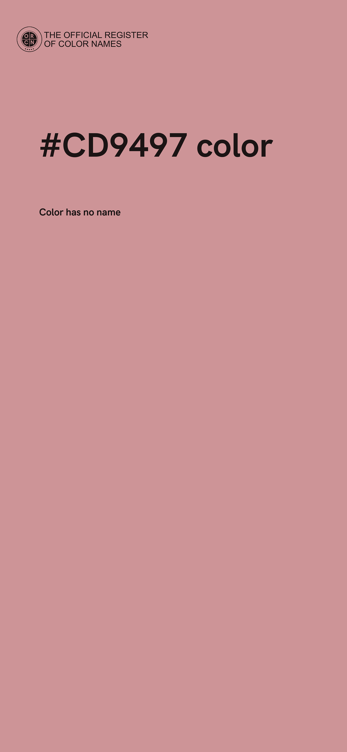 The digital color HEX #CD9497 belongs to the Red Color Family featuring Mild Saturation (Saturation Family) and Very Light (Brightness Family).