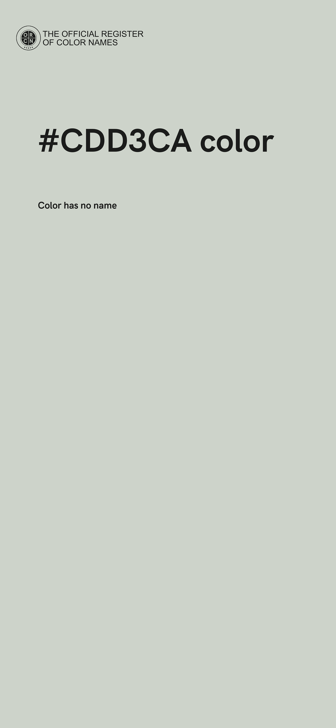 For printing in non digital world, #CDD3CA is represented in CMYK as 2 Cyan, 0 Magenta, 4 Yellow, and 17 Black (Key) (C:2 M:0 Y:4 K:17).