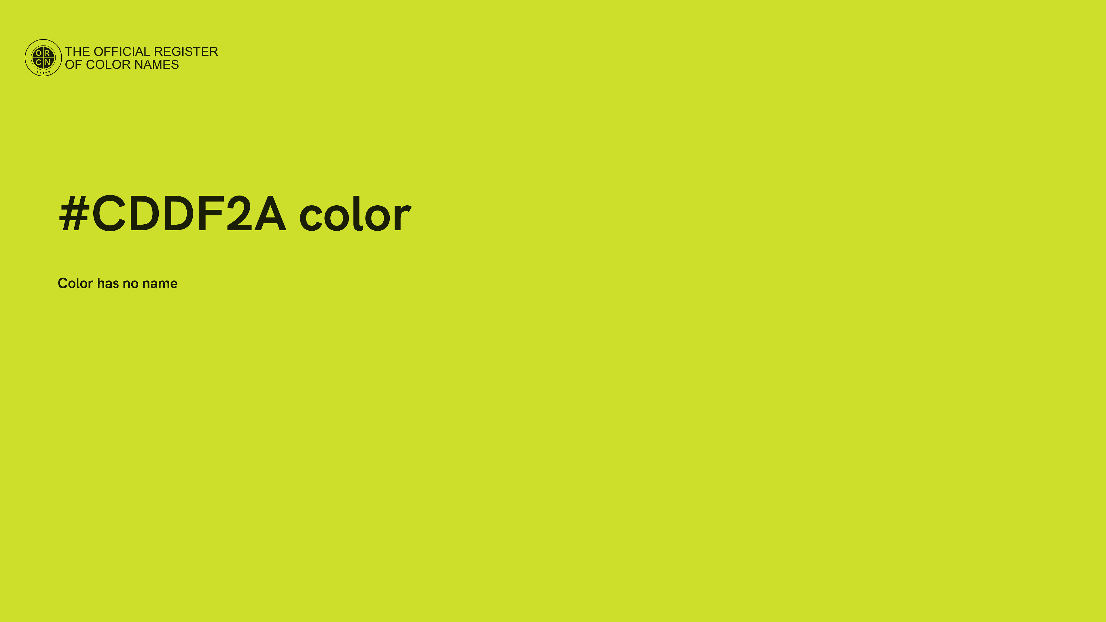 The digital color HEX #CDDF2A belongs to the Yellow Color Family featuring High Saturation (Saturation Family) and Light (Brightness Family).