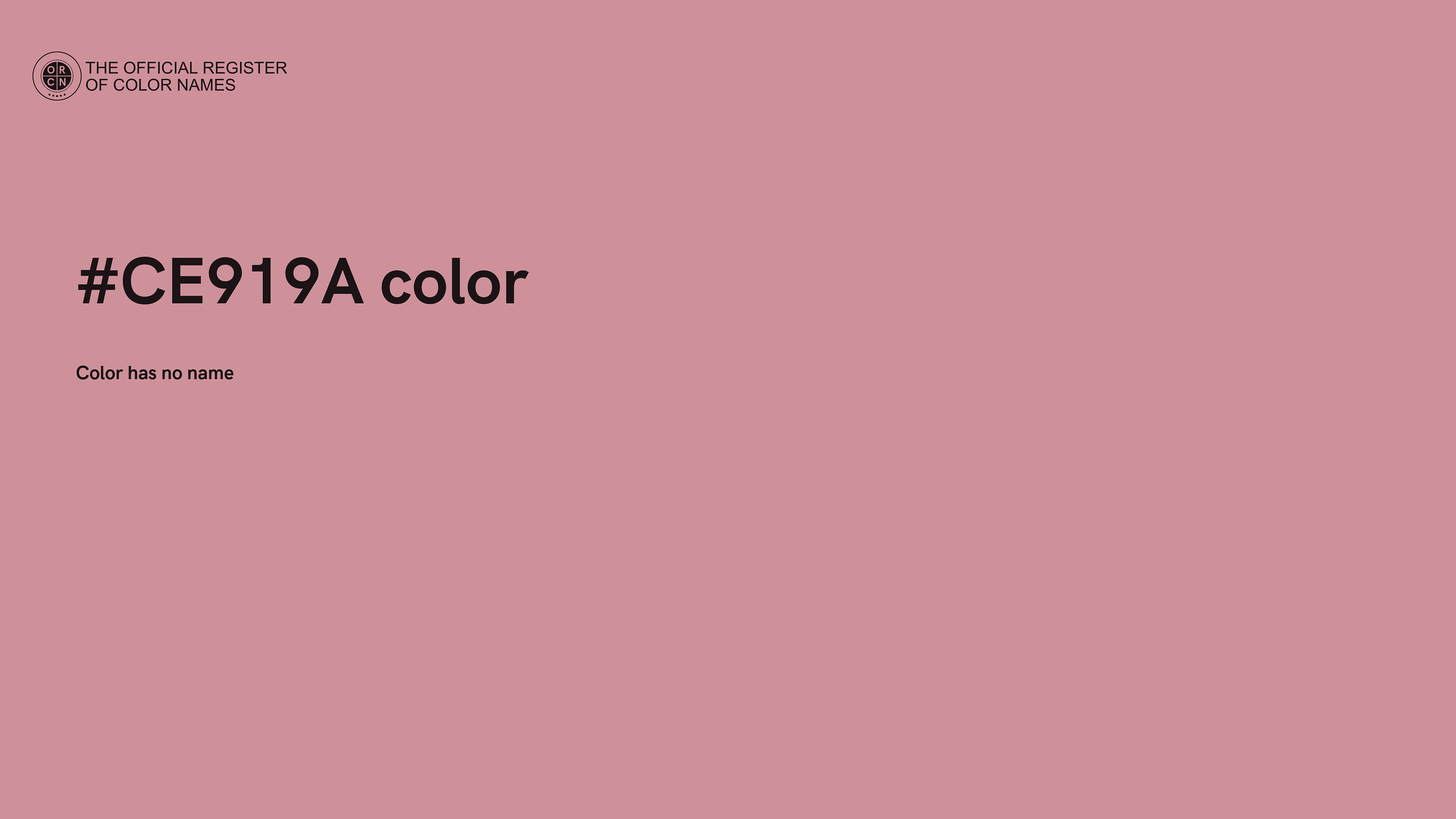 For printing in non digital world, #CE919A is represented in CMYK as 0 Cyan, 24 Magenta, 20 Yellow, and 19 Black (Key) (C:0 M:24 Y:20 K:19).