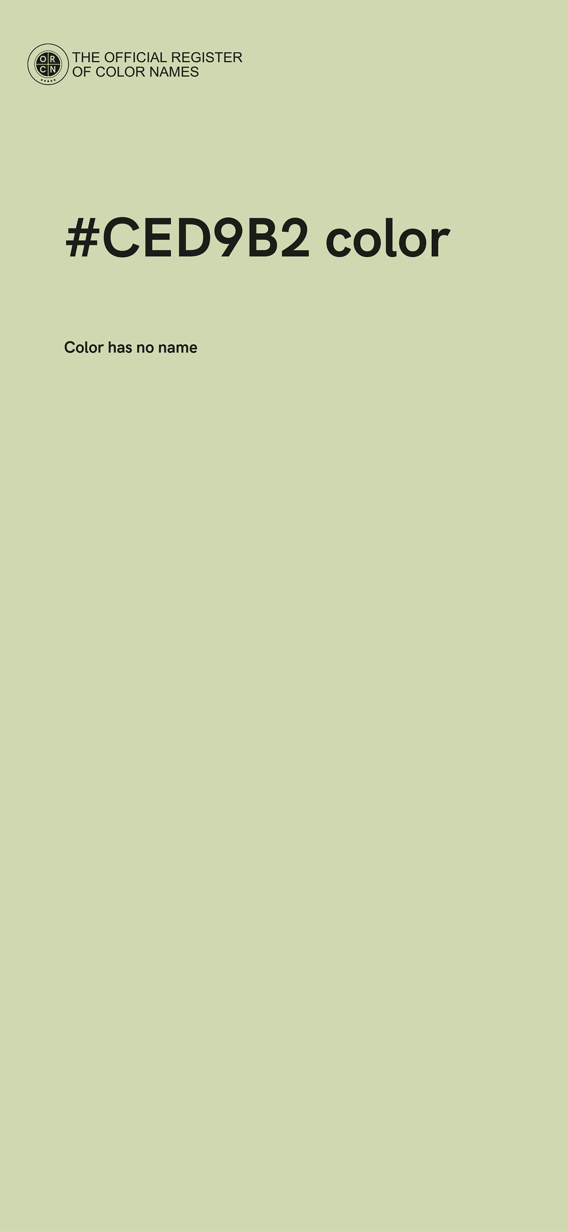 The digital color HEX #CED9B2 belongs to the Chartreuse Color Family featuring Mild Saturation (Saturation Family) and Very Light (Brightness Family).