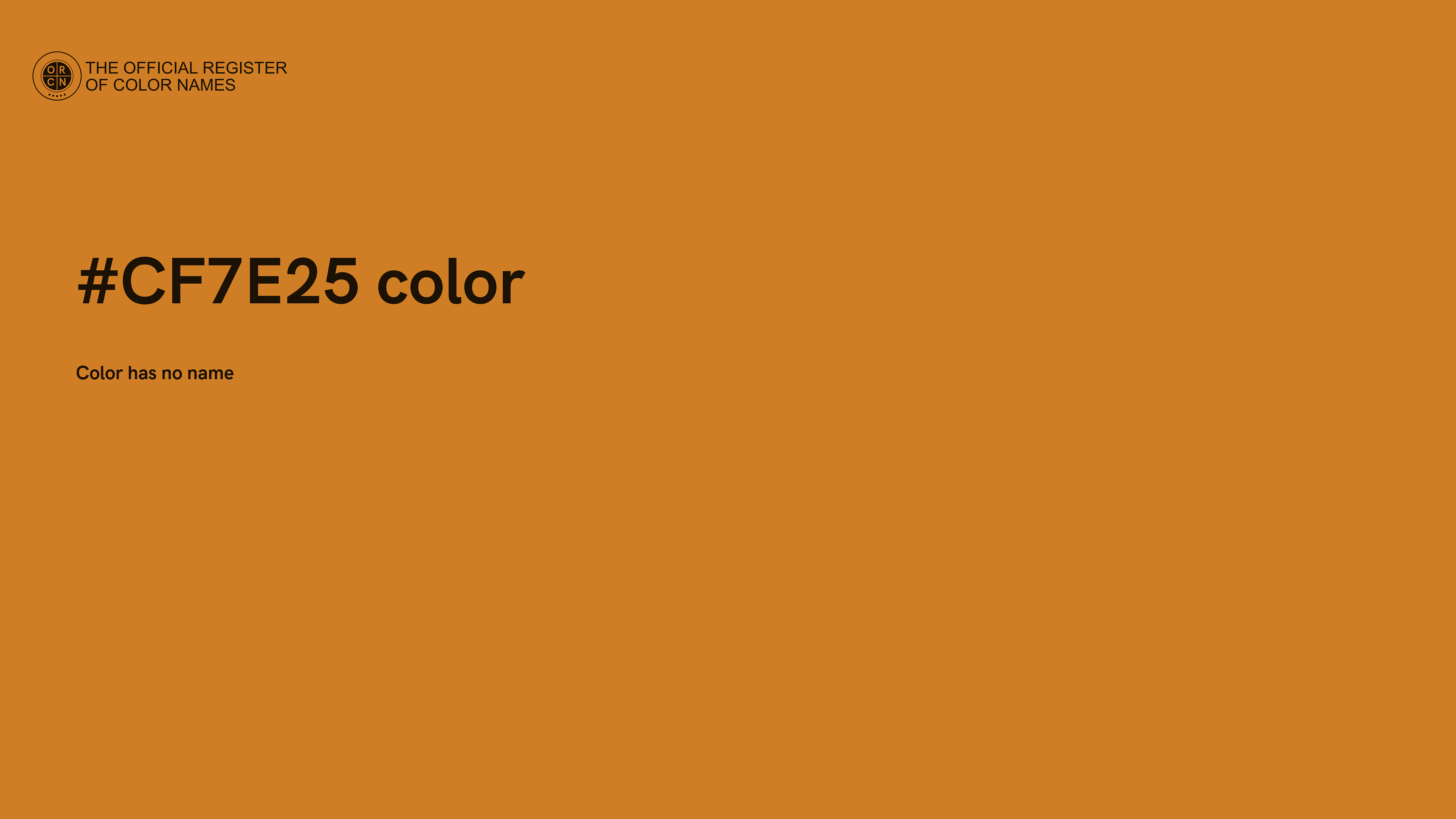 The digital color HEX #CF7E25 belongs to the Orange Color Family featuring High Saturation (Saturation Family) and Light (Brightness Family).
