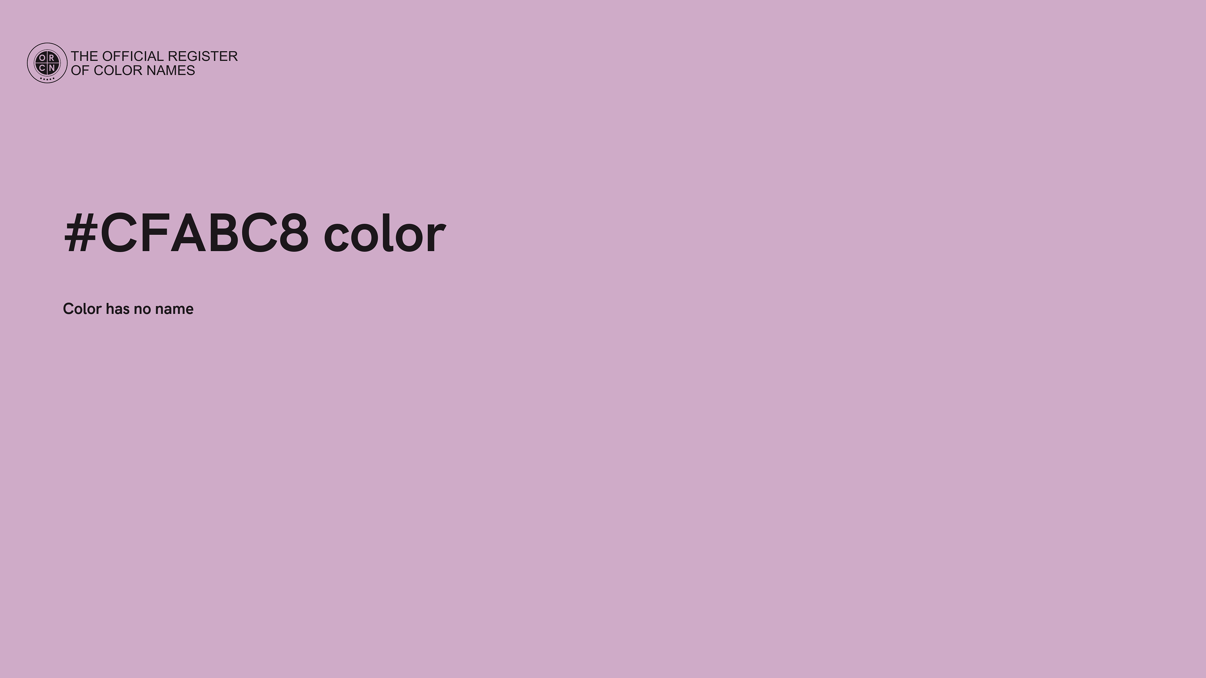 The digital color HEX #CFABC8 belongs to the Magenta Color Family featuring Mild Saturation (Saturation Family) and Very Light (Brightness Family).
