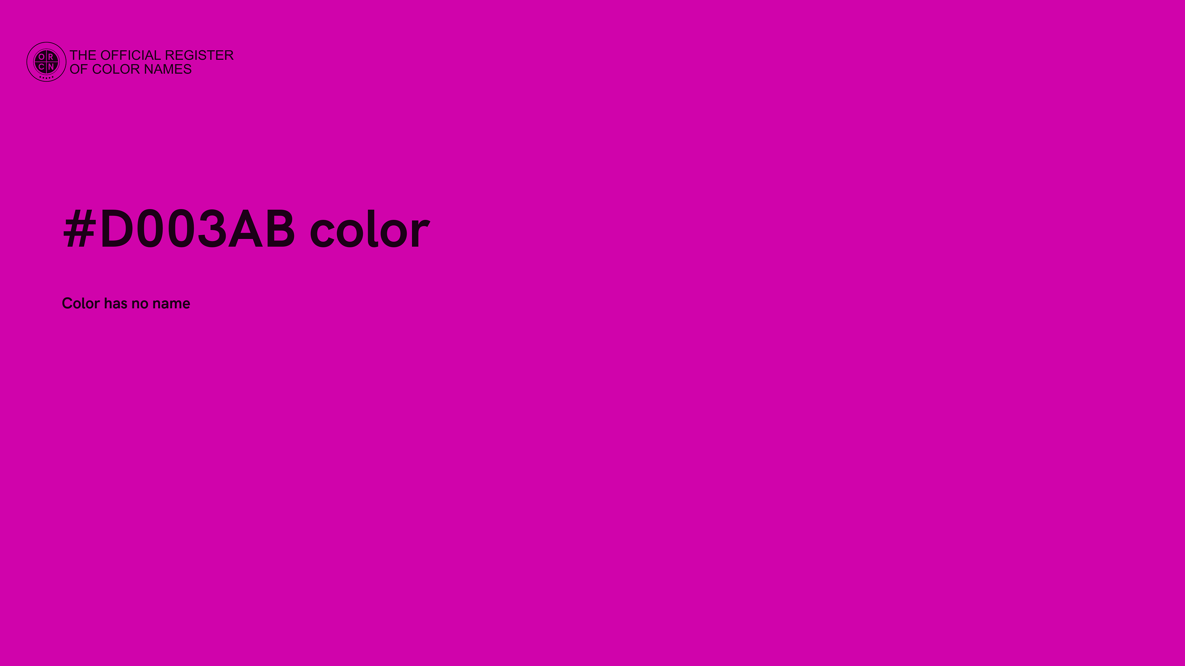 For printing in non digital world, #D003AB is represented in CMYK as 0 Cyan, 80 Magenta, 15 Yellow, and 18 Black (Key) (C:0 M:80 Y:15 K:18).