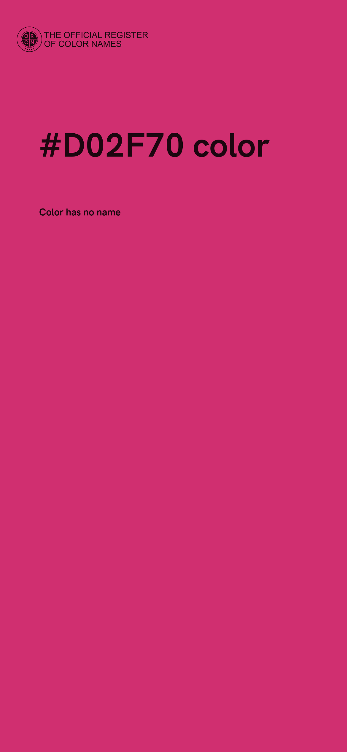 The digital color HEX #D02F70 belongs to the Rose Color Family featuring High Saturation (Saturation Family) and Light (Brightness Family).