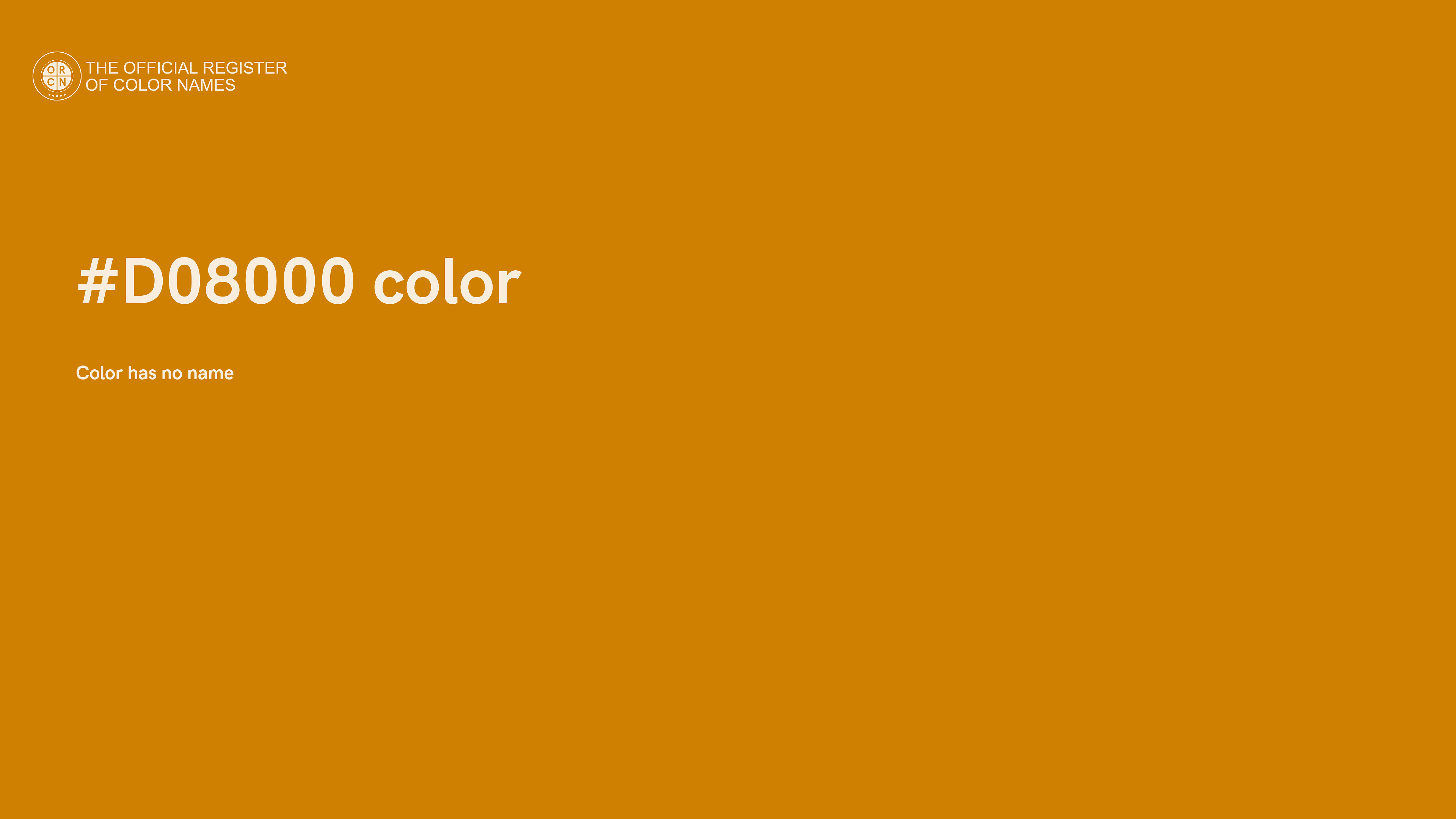 The digital color HEX #D08000 belongs to the Orange Color Family featuring Full Saturation (Saturation Family) and Light (Brightness Family).