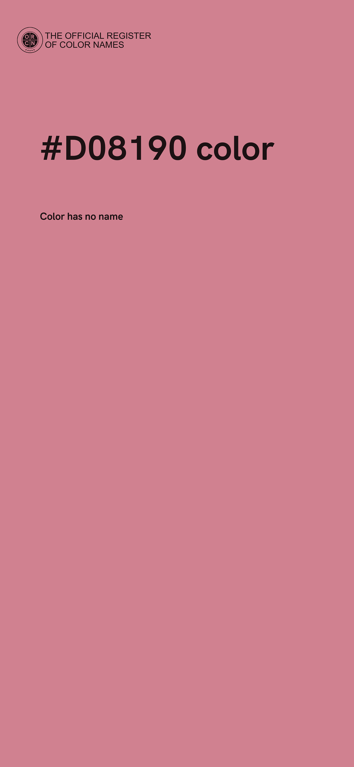 The digital color HEX #D08190 belongs to the Red Color Family featuring Moderate Saturation (Saturation Family) and Very Light (Brightness Family).