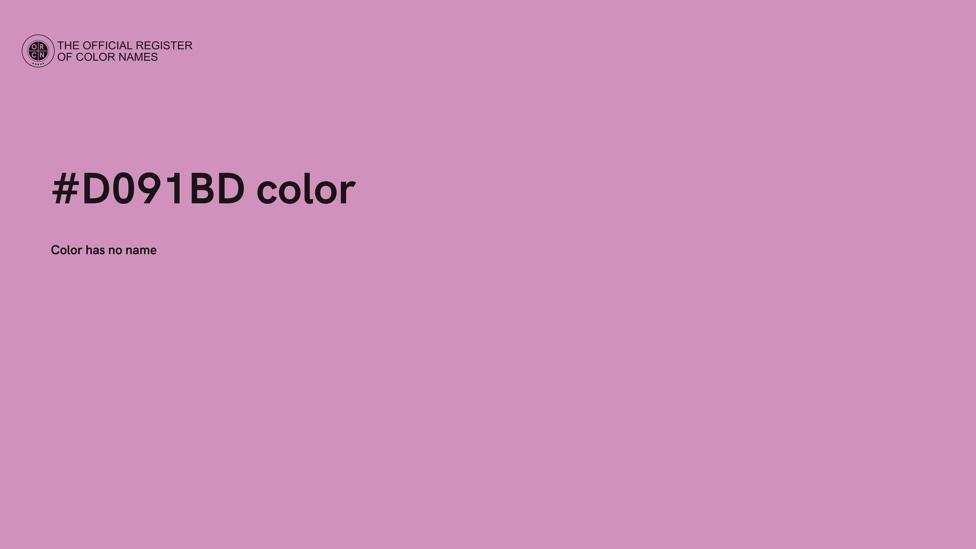 The digital color HEX #D091BD belongs to the Rose Color Family featuring Moderate Saturation (Saturation Family) and Very Light (Brightness Family).
